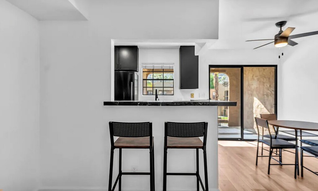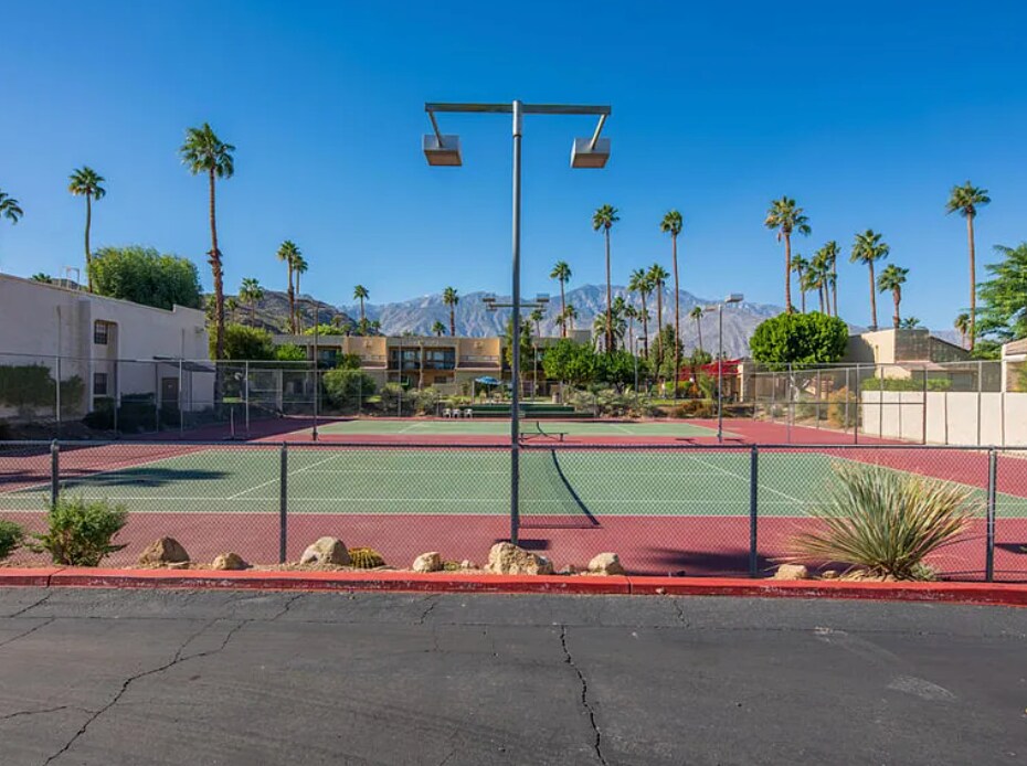 Escape to the ultimate desert oasis at J14 in Palm Springs! This charming, fully remodeled upper-level condo offers 2 bedrooms, 1.25 bathrooms, and 705 sq ft of modern comfort, perfect for a relaxing getaway or extended stay. Step into a bright, freshly painted interior with new vinyl plank flooring throughout and ceiling fans in every room for year-round ease. The brand-new kitchen boasts sleek leather-finish granite countertops, all-new appliances, and plenty of space to whip up meals. Both bathrooms have been tastefully updated, and you'll love the convenience of a new Samsung washer and dryer right in the unit. The open floor plan seamlessly connects the living and dining areas to a private balcony, where you can soak in stunning south-facing panoramic mountain views. Nestled in a vibrant community with lush lawns, mature citrus trees (grapefruit, lemon, and lime), three sparkling pools, four soothing spas, tennis and pickleball courts, and a clubhouse, you'll have endless ways to unwind. Ideally located just minutes from downtown Palm Springs, with easy access to shopping, dining, and attractions—this is your ideal home base for exploring the Coachella Valley. Available for short-term or long-term rental; contact for rates and availability!