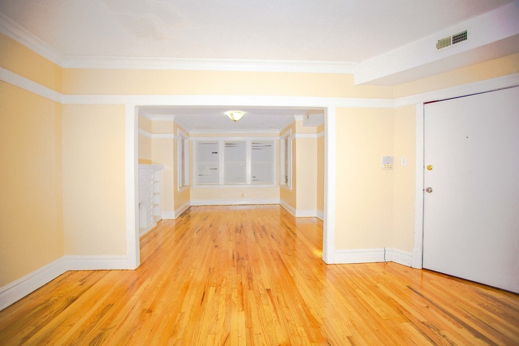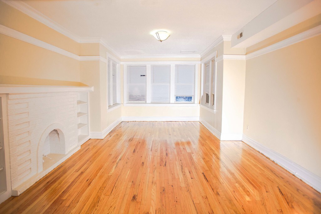 Huge one bedroom apartment with original hardwood floors! Apartment is finishing renovation which includes fresh paint, kitchen, and bathroom countertops, cabinets, and more. Apartment is in a great part of town with quiet mostly retired neighbors. 15 minutes from downtown directly up Jackson street or take nearby train in any direction. Property professionally managed with extremely fast response times!