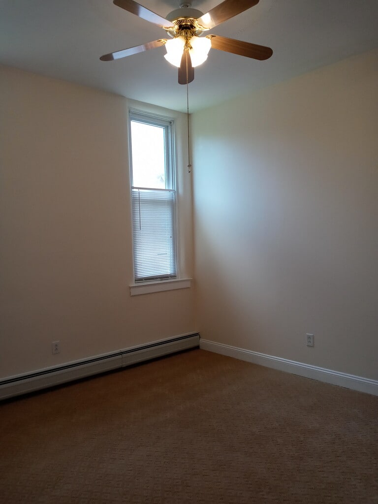 One large bedroom with second small bedroom or office located in a nice residential area, 5 minutes walk to downtown Historic Hollidaysburg. Ceramic, laminate wood, & carpeted floors. Eleven-foot ceilings with ceiling fans. Window air conditioners in main living area & bedrooms. Three spacious closets and laundry room/storage room. Full size washer & dryer included. Dishwasher, microwave, bar stools, window blinds included. Secure, smoke free, no pets apartment building. Mail boxes located in locked entrance. Parking lot on site. Heat and trash pick-up are included in rent. Tenant pays for electric & water/sewer. Rental Credit/Check will be required from prospective tenants. 1 year lease. We do not accept third party funding.