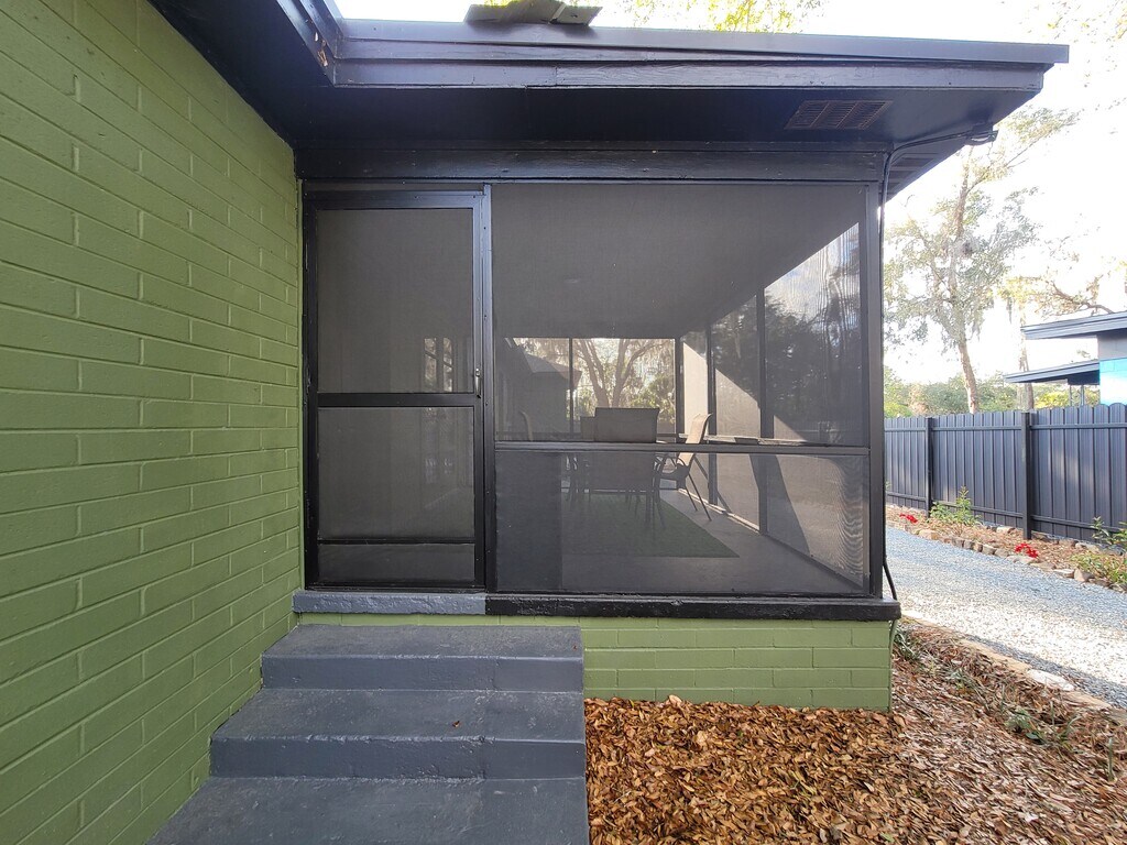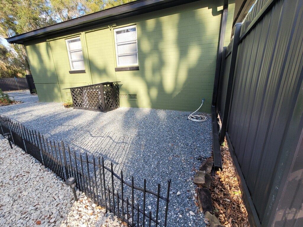 Off the beaten path ,but close enough to walk to grocery stores, post office, resturaunts,SILVER SPRINGS STATE PARK in walking distance. Schools recreation parks ,Dr offices , just about everything just down Silver Springs Blvd. Ormand Beach just about 1 hr away and closer than that are many water Springs to enjoy for the day. Not to much traffic down this road ,woods in front and woods in the back ,nice neighbors on each side of house. There's a small Cottage on the same property just behind this house ,that has a privacy fence between the two places. There's a area for rent to park an RV on soon. All is divided with privacy fencing. The house is very roomy inside with the livingroom open to the dining room and kitchen. There's an open pantry shelves off to the side. Half bath in that area to backdoor. A nice back porch, screened in with indoor/out carpet and a table and chairs setup. Full bath has only a full shower, NO TUB. There is the split units AC/HEAT ,2 in the livingroom that takes care of the air for livingroom, dining and kitchen area ,theres one in each bedroom. A ceiling fan /light in diningroom area. Garage for washer/dryer and shelves ,storage ,NO VEHICLES to go in. Backyard and side yard is all granite mix ,no grass to mow ,has Tennessee mtn rock boarder ,with leaves for mulch at this time ,hoping to also put mulch in there soon. The shrub trees as they grow taller will give more privacy up along the privacy fence. Front yard also has the same shrubs to grow tall and that will be the privacy fence. Front driveway is crushed concrete with railroad ties for sides ,and more parking can be along the road on the grass beside the shrubs. Sidewalk is pavers up to sidewalk porch. Property manager will maintain the grounds of mowing , blowing leaves,watering the shrubs, triming, and picking up fallen branches. They are only minutes away ,if you have problems with anything . This house has been renovated in 2025 ,we have remodeled just about everything ,all new refrigerator, stove ,AC/heat units ,Tile shower. All ceilings,walls have been painted ,all new floors, in livingroom, breezeway ,hallway ,3 bedrooms ,other floors have tile. NO ACESS to attic, that is closed off. All New lighting in every room and smoke detectors. The outside of house has also been painted and all new landscaping The rent is $ 1650 a month does not include utilities , city water sewage, garbage pickup, or internet /cable. We require first and last month's rent upfront and $ 200 deposit non refundable for cleaning when leave. There is NO ANIMALS of any kind to be on the property and this is a NON SMOKING PROPERTY ,also.