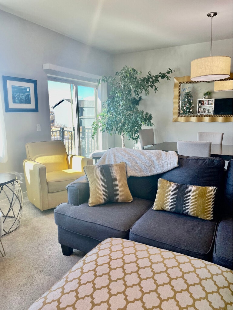 Breathtaking Mountain views, spacious and beautiful Townhome 3 level Townhome with incredible Peak Views, Walk out basement, Open space in back, Full driveway with 2 car garage. Open concept with beautiful white and grey colors throughout home. Laundry room with washer and dryer on top floor. Cozy yet open and spacious. Dual Master bedrooms. Large basement living space that could be a non-conforming 3rd bedroom with built in Murphy Bed. Great for office space, play or entertainment. Full bathroom in basement. You will love this home! HOA +$130/mo Open to sooner move in date and longer lease. Please reach out :)
