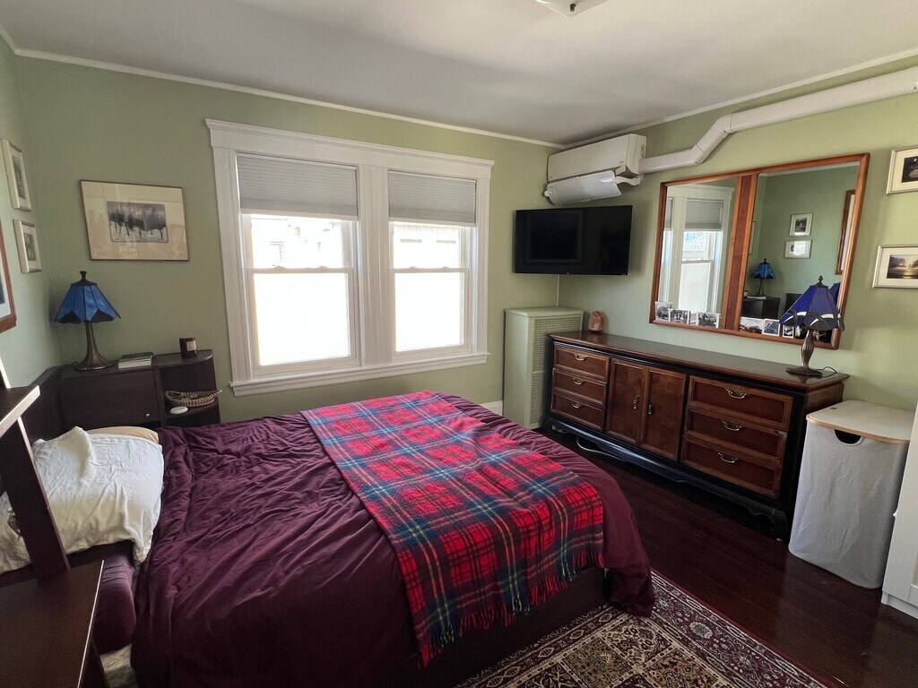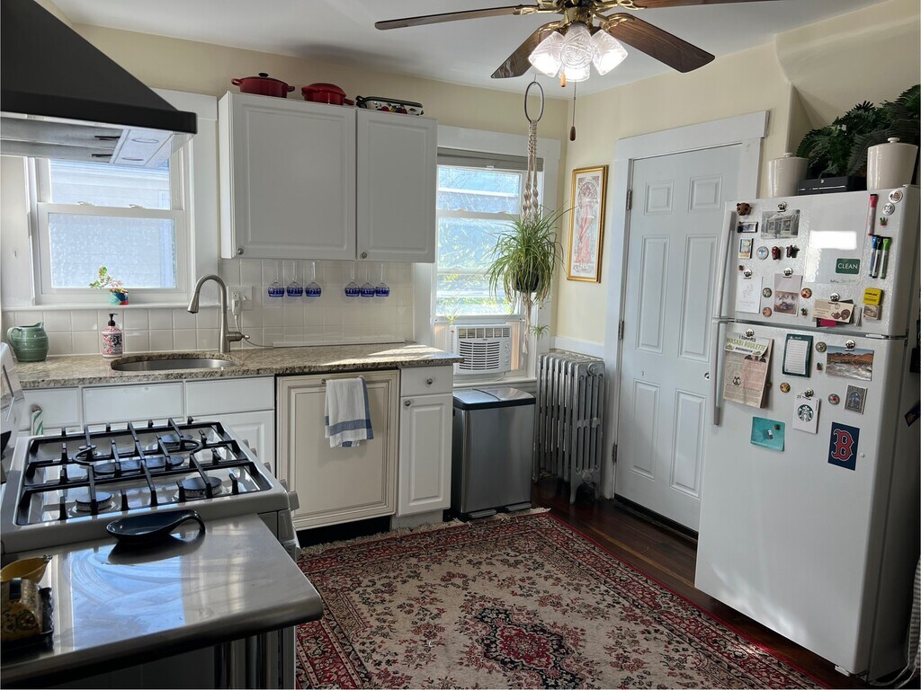 Sun-drenched second floor unit within walking distance to many stores and easy access to 73 Harvard Bus line. Unit has been owner-occupied for the last 4 years. Hardwood floors throughout. Updated bathroom and kitchen. Custom IKEA closet in primary bedroom (can be removed if requested). Second bedroom has two closets. Ductless split AC units in living room and primary bedroom. New washer and dryer in basement. Extra basement storage. First and security due on signing lease. Pets are allowed with conditions (vet records, behavioral assessment). Backyard is shared with other tenant. No broker fee. References, credit check, and background check required. Heat, hot water, and sewage included in rent. Renter pays electric.