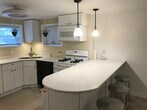 Three block walk to Jefferson Park train station. Newly remodeled (3 years). Beautiful two bedroom basement apartment in three flat. Radiant heat in the concrete floor. Heat and gas included. Quartz countertops , new appliances. Laundry facilities right out the back door. Separate hot water from other apartments. Smoking prohibited, no pets. Security cameras throughout the building. Long term tenants.