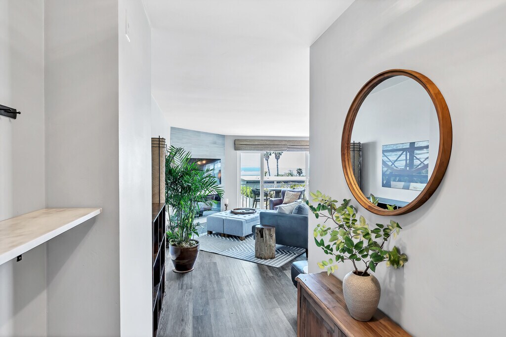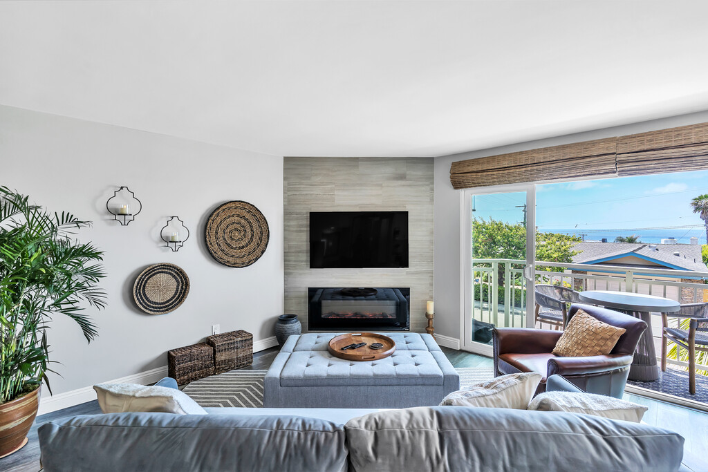 Welcome to "Strandhaus #5366". This is a one-of-a-kind Bird Rock/La Jolla living experience. The minute you walk in the door, you will fall in love with this beautiful condo overlooking the ocean. **The views are better in person than the pictures can capture!** This spacious 1,015 sq ft home offers an open floor-plan with lots of seating throughout. Perfect for working from home. There is even an adjustable desk area by the window facing north/west overlooking the ocean. Enjoy the luxury of high-quality appliances, countertops, furnishings throughout and adjustable beds for a slow morning wake up or movie night. The bedroom is set up for an option of either one king size bed or two split extra-long twin beds and have the finest linens. The bedroom has a standard closet as well as a separate walk-in closet, a second adjustable work from home desk, and Smart TV. The living area is set up with a very comfortable couch and ottoman perfect for lounging, 55-inch smart TV, leather chair, fireplace as well as a second very comfortable couch/bed to use as a third bed option. The balcony in the living room has two opposing sliding doors that open onto a comfortable furnished balcony overlooking the ocean and sunsets. The kitchen is fully equipped and offers everything you possibly might need. The kitchen island is a great place to prepare meals together. The home includes a recently renovated laundry closet with a washer and dryer combo, high speed internet and AC in bedroom. One of the great pleasures of this beautiful condo is the ocean breeze and subtle sound of crashing waves at night with the feeling of privacy. The unit faces Chelsea St. which is popular for bikers, joggers and beautiful homes. The location could not be better. Nice coffee shops, bakeries, surf shops, numerous restaurants, wellness studios and bars as well as convenience and grocery stores are just steps away. Walk to the shops, the beach, start your bike tour, go surfing, watch the sunset, go to the Calumet Park… all from your front door. The recreation room has a pool table and limited weight equipment, and the common deck area has lounge chairs as well as a fire pit. There is one parking spot (fits SUV) in the garage and free street parking is available. There is an entrance to the complex from Chelsea which provides a private feeling entrance to the unit. There is bike and surfboard storage available in the parking garage. No smoking, no pets.