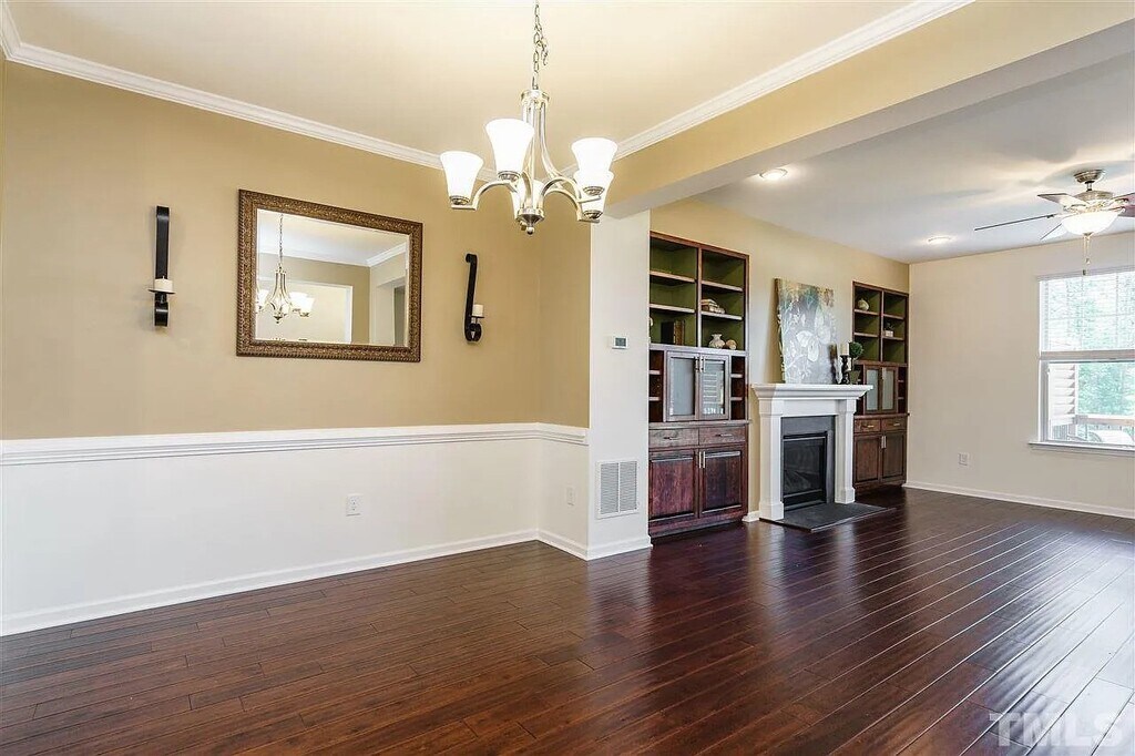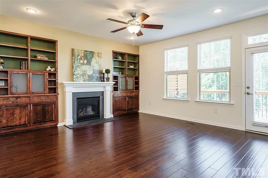 Like New Luxury Townhome Minutes to 540, work, shops, YMCA. Walk to greenway trails, park. Wake County base schools: Highcroft Elem, Mills Park Middle, Green Level High. End of quiet street. No rear neighbor, private, wooded, water view. Community Pool, clubhouse, playground a step away. Ample guest parking & oversized 2 car garage with extra storage and a storage room. Downstairs has full bath suite. 3 bedrooms + 4th room downstairs can be used as a bonus room, office or bedroom. All appliances included. Large master suite. Separate jacuzzi tub and walk-in shower in master. Walk-in closet. Fireplace. Built-ins. Recess lights. Lots of storage. Large kitchen. walk-in pantry. Gas cooktop. Separate formal dining and breakfast nook. in-unit laundry. HOA maintains exterior, lawn. Excellent background/credit score required. No pets/smoking. Applicant pays screening fee (~$50/tenant) min 1 yr. lease