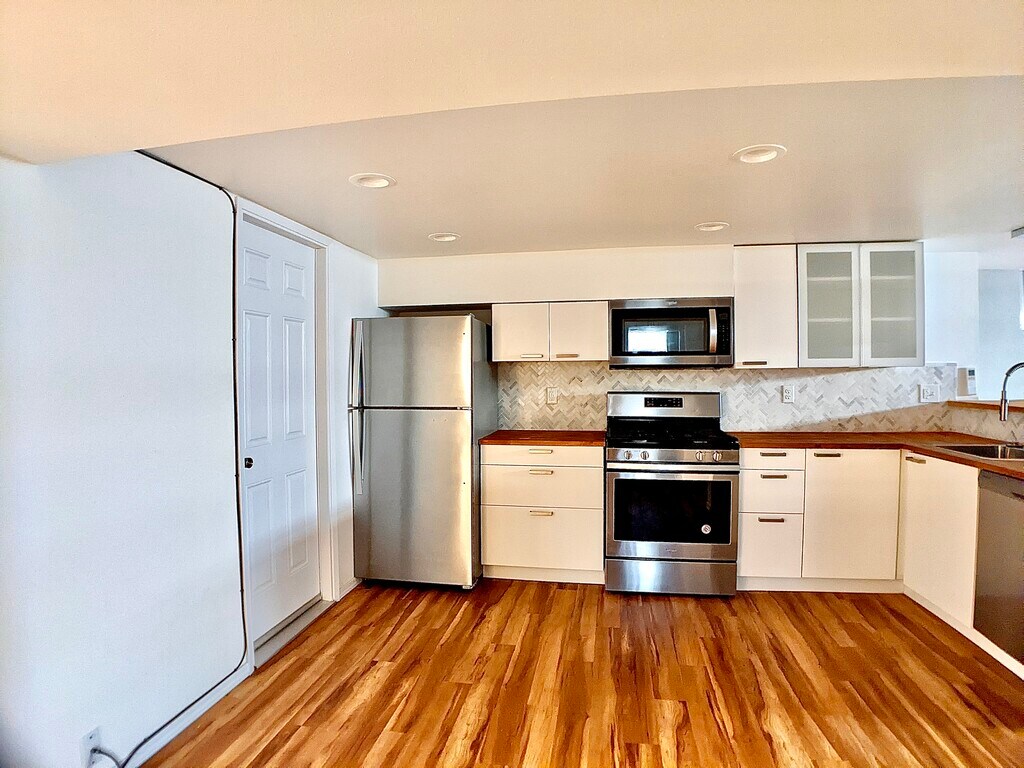 This airy, light-filled basement apartment nestled in the serene Cully Neighborhood of NE Portland is just a stone's throw from NE Killingsworth. Spanning 800 square feet, this updated and open-concept apartment is perfect for anyone seeking both comfort and convenience. Upon entering, you're greeted by a spacious, open living area that seamlessly connects to a well-appointed kitchen. The kitchen features sleek stainless-steel appliances, a stylish bar top with pendant lighting, and ample counter space, making it a delight for any home chef. The generously sized living area is perfect for relaxing or entertaining, while the adjacent bedroom offers two large windows that invite in plenty of natural light. The thoughtfully designed bathroom boasts natural light from a window above the vanity area and is complete with a shower and a full bathtub. Enjoy the tranquility of a quiet neighborhood while being close to local amenities and vibrant community spots. This charming hideaway is a perfect blend of modern comfort and peaceful living.