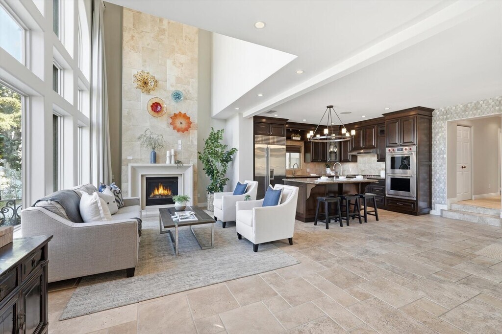 Stunning, designer Naples Island home just steps from the waterfront and adjacent to the upscale second street restaurants in the beautiful luxury neighborhood of the Belmont Shore offering exceptional value, luxury finishes, and an expansive rooftop deck with spectacular 360° water and city views. Built in 2006, this coastal residence showcases an impressive open-concept layout with soaring two-story ceilings, dramatic window displays that flood the home with natural light, and beautiful travertine and hardwood floors throughout. The highly upgraded chef’s kitchen is equipped with premium stainless-steel appliances including Wolf range and hood, Wolf double ovens, and a Sub-Zero refrigerator, centered around a functional island ideal for cooking and entertaining. The spacious Great Room flows seamlessly to an outdoor patio, creating the perfect indoor-outdoor living environment. The main level also features a private fourth bedroom plus a home theater or dedicated office option, and a massive three-car garage. Retreat upstairs to the expansive primary suite complete with an adjacent sitting room ideal for work, relaxation, or a home gym. Enjoy ocean breezes from the private balcony. Dual walk-in closets lead to the spa-inspired primary bath featuring a jetted soaking tub, steam shower, double sink vanity, and a separate makeup vanity for getting ready for nights out in nearby Belmont Shore and Naples. Two additional generous bedrooms complete the second floor, including an ensuite bedroom and a shared balcony. The show-stopping rooftop deck is built for top-tier entertaining with panoramic views, a built-in BBQ, refrigerator, and sink, perfect for hosting gatherings or enjoying peaceful sunsets over the bay. Additional amenities include built-in Sonos speakers, recessed lighting, and thoughtful designer upgrades throughout. Experience luxury coastal living at its finest in this exceptional Naples Island home.