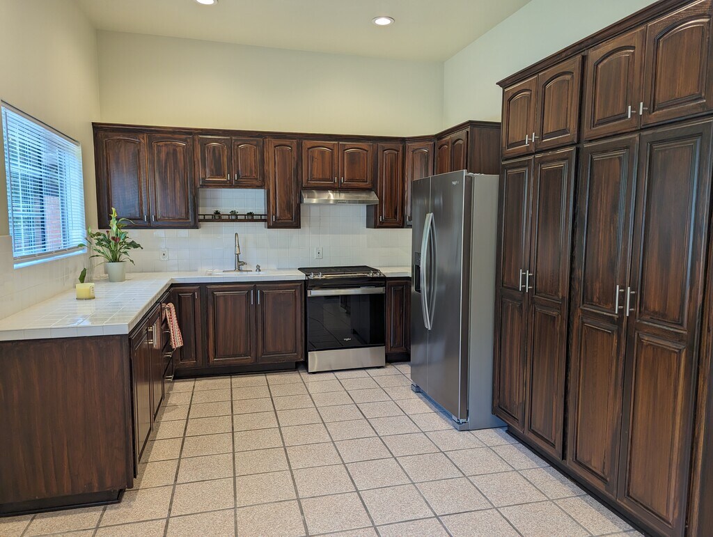 Gated exclusive South of the Boulevard rear house in Tarzana. 2 large bedrooms + 2 bathrooms + Attached garage parking. Tenants have access to beautiful and sprawling back yard with BBQ area. House is completely redone inside, new kitchen, appliances, bathrooms, paint, and fixtures. New carpets in both bedrooms. Cathedral ceilings throughout for a sense of space, new recessed lighting, central AC/Heat. Primary Bedroom with ensuite bathroom: shower, tub, and bidet. Garage parking (1 car) with large storage area and convenient washer/dryer. Additional parking space in driveway area. Short walk to Ventura Boulevard's multitude of shops and restaurants. UTILITIES INCLUDED. This property will not last, truly a rare opportunity to live in SOTB in Tarzana. Available immediately! Sorry, no pets.