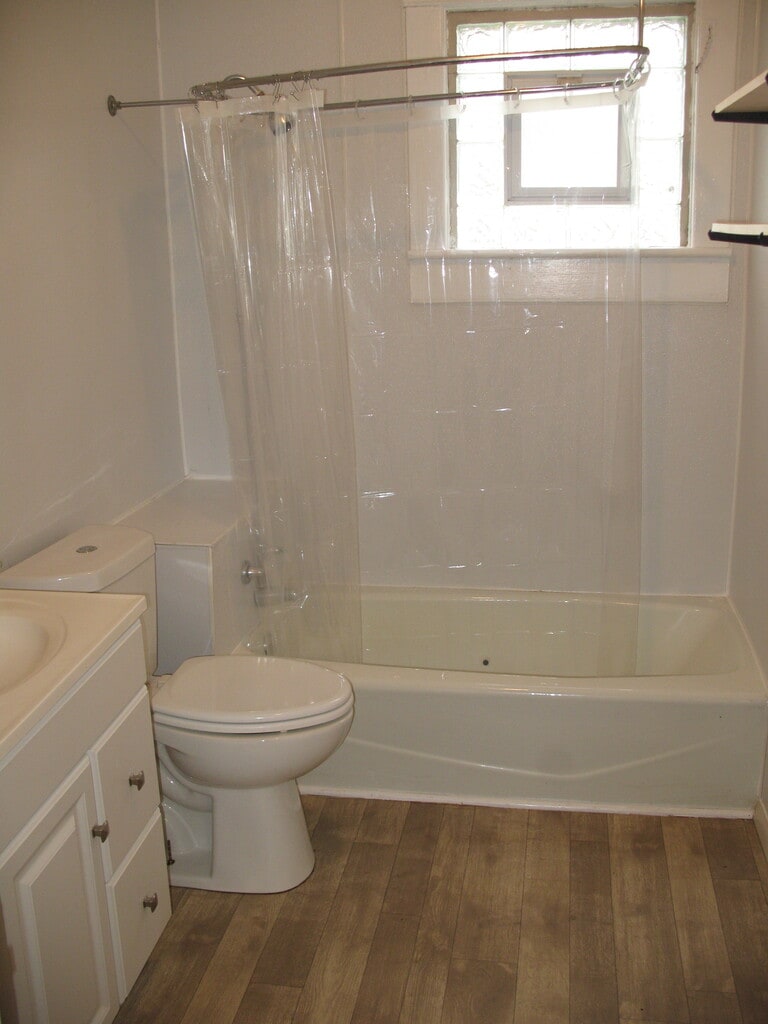 AVAILABLE NOW!! GREAT VALUE!! NO PETS NO SMOKING CALL 8 am to 8pm This is a NEWLY UPDATED 1 bedroom efficiency that INCLUDES water, sewer and trash. All you pay for is your own electric and gas usage for hot water and a newer high efficiency forced air gas furnace. There is a kitchen/living area with brand new cabinetry and carpet, plus newer appliances and countertop. A separate bedroom also has new carpet and a free-standing wardrobe/closet. The bath is good sized with tub, brand new shower and vanity, medicine cabinet, storage shelves and a glass block window with a vent and newer flooring. The apartment has been FRESHLY PAINTED AND PROFESSIONALLY CLEANED, and new vinyl replacement WINDOWS have recently been installed along with a complete new exterior vinyl siding job. IT'S BEAUTIFUL! Outside is a large, covered cement porch and off-street PARKING right beside the porch, but it is also convenient to bus routes and THE WE CUT THE GRASS! There is storage outside of the apartment in the attic. CALL 8am to 8pm
