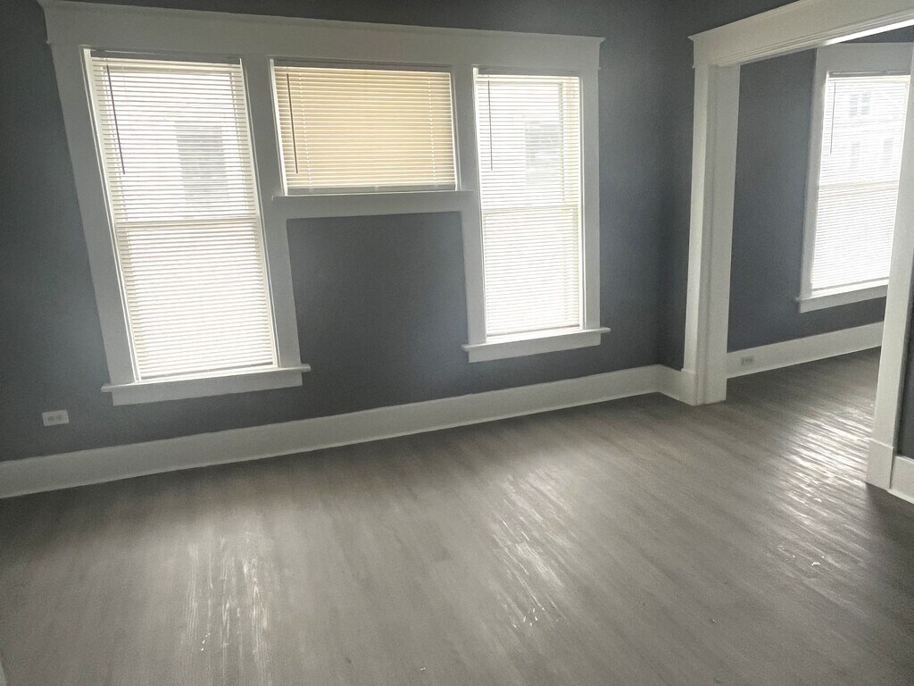 Newly renovated two-bedroom apartment on the second floor. Brand new flooring, paint, fixtures, etc. Exclusive balcony. Street parking. Includes stove and fridge. Tenant pays gas and electric. No pets.