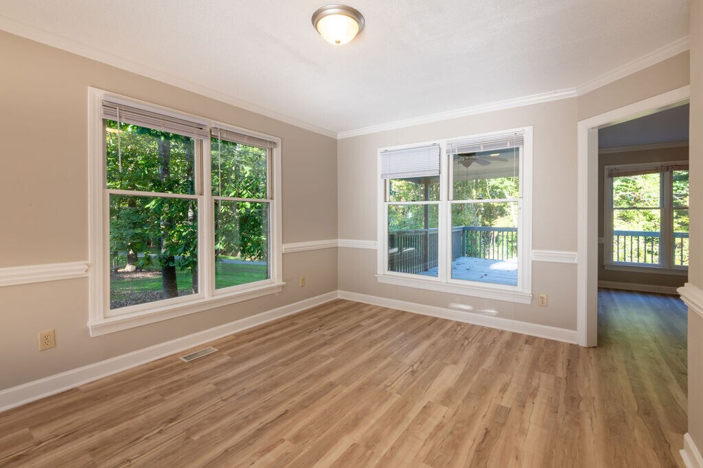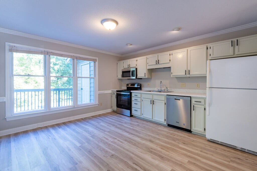 Spacious, sunny 3 bedroom 3.5 bath corner three level townhouse (2300 sqft) located in Woodcroft with miles of walking trails in your backyard. Centrally located and convenient to Duke, RTP, Durham, and Chapel Hill. Easy access to I-40 and NC-54. Main level has an open dining and living room with tall ceilings and a lot of natural light. Sit-in kitchen walks out to spacious, half-covered deck overlooking the woods and American Tobacco Trail. Each bedroom has their own bathroom with a half bath on the main level. Lower level has an additional bonus living area with a second large primary bedroom. Ceiling fans in all the bedrooms. Washer, dryer, dishwasher, and refrigerator included. Tenant pays utilities. Two assigned parking spots with nearby visitor parking. No pets and no smoking. $50 application fee. $2000 security deposit, first, and last months rent to move in. Renter's insurance required. Available end of November. Minimum qualifications include 650+ credit score, 3X monthly rent gross income, and positive references.