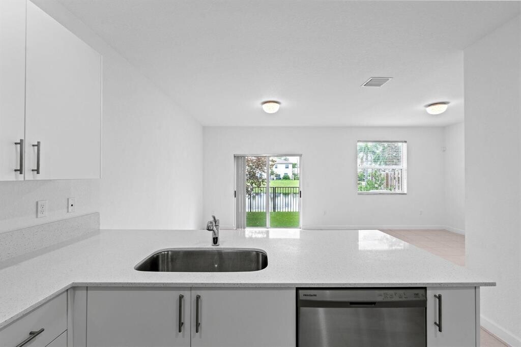 Welcome to this beautifully designed new-construction townhome offering 3 bed, 2.5 baths, and serene lake views. Enjoy modern finishes, high ceilings, impact windows, and an open-concept layout filled with natural light. Includes high-speed internet and parking for 3 vehicles (1-car garage + 2-car driveway). The sleek kitchen features stainless steel appliances, ample storage, and a large peninsula with bar seating. Upstairs offers a spacious primary suite with walk-in closet and dual-vanity bath, two additional bedrooms, full bath, and in-unit laundry. Prime location near major highways, shopping, dining, airports, and beaches.
