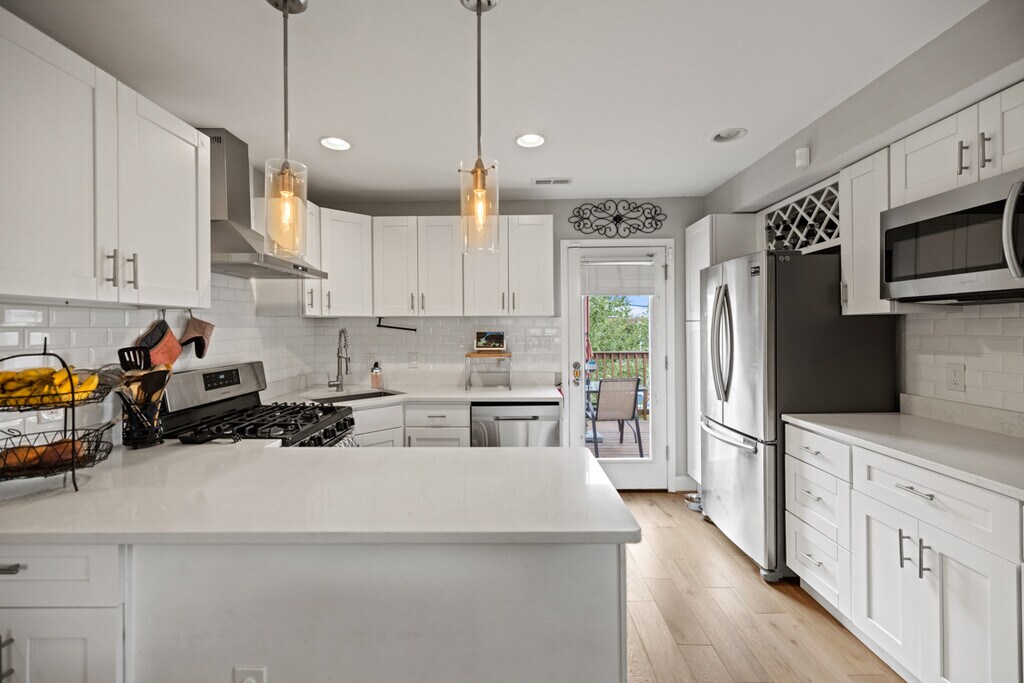 Ft Totten Beauty | 2 Bed | 2.5 Bath | 1300 Sf | Huge Outdoor Deck | Private Secured Parking Top two floors of a remodeled (2019) townhouse (basement already rented) featuring: Open Main Floor, Large Windows w/ Lots of Natural Light, Recessed LED Lighting, SOLAR PANELS (low electric bills!) Ample Storage, Hardwood Flooring, Powder Bath on Main Level, Second Floor Front Load Laundry, En-Suite Bathrooms, Nest Thermostat, Ring Doorbell; Kitchen features: Shaker Style Cabinets, Island w/ Storage & Seating for 2, Built-In Cabinetry, Quartz Countertops, Samsung Stainless Steel Appliances, French Door Refrigerator w/Ice Maker, Full Size Dishwasher, Dual Zone Wine Cooler, Stainless Steel Sink Basin, Garbage Disposal; Baths feature: Tub/Shower Combo, Extra Large Marble Tiled Shower, Double Vanity with Storage, All En-Suites; Metro: 11-minute (0.5 miles) walk to Fort Totten (Red, Green, Yellow); Close to: Aldi, Walmart, Giant, Chick-fil-A, OneLife Fitness, newly remodeled LaMond Riggs library