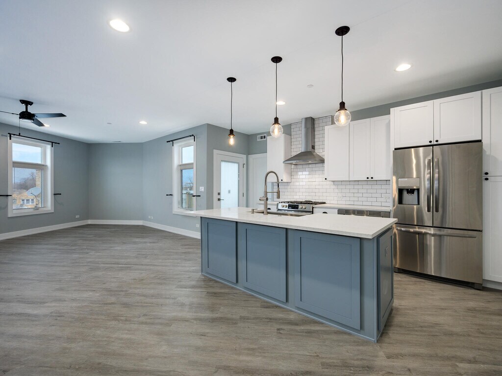 - Unit Description- New construction FIRST FLOOR apartment! Available NOVEMBER 1: Brand new construction in 2022, luxury apartment building w/ 2 bed/ 2 bath units in Jefferson Park/ Gladstone Park! Rent includes outdoor parking spot for 1 car (additional spots available for rent). Modern, open layout, 9’ ceilings, 1,100 SF+/-, large kitchen w/ 7' grey island & seating for 4, white 42" upper cabinets + subway tiles, vented chef's range hood, pantry cabinets, stainless appliances, quartz counters & farmhouse sink w/ oversized sprayer. Unit features private extra-large deck! Grohe & Kohler fixtures throughout; Master bedroom w/ his & hers closets w/ closet built-ins, private master bath. Nest thermostat, video intercom entry system to receive packages when away, in-floor & wall soundproofing, tons of closets, soaking tub, side-by-side front loading laundry in unit, central air, ceiling fans, blinds & curtain rods installed, sprinklers. Nonsmoking building. 1 Mo. Deposit, additional deposit for pet + pet rent; Agent owned; local ownership. Parking available for electric cars! Great highway access to I-90 and I-94. Near Milwaukee & Foster, walking distance to restaurants, El train (Blue Line) & Metra train (Jefferson Park stops), Pace Rapid Transit Pulse Bus, grocery, workout & more! Short term leases considered. Apartment Unit: 1Apartment Model: 1 - 5528 W Gettysburg St$2,4952 Bedroom, 2 Bath, 1100 sq ftAvailable November 1, 2025![]() - Unit: 1 - Image 1 ![]() - Unit: 1 - Image 2 ![]() - Unit: 1 - Image 3 ![]() - Unit: 1 - Image 4 ![]() - Unit: 1 - Image 5 ![]() - Unit: 1 - Image 6 ![]() - Unit: 1 - Image 7 ![]() - Unit: 1 - Image 8 ![]() - Unit: 1 - Image 9 ![]() - Unit: 1 - Image 10