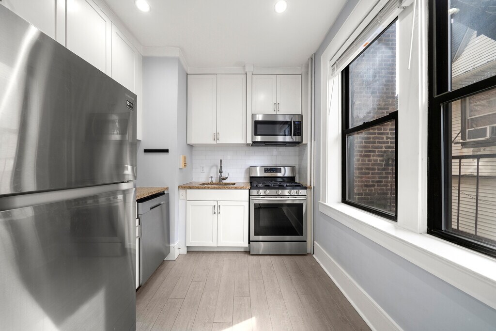 Commuter's dream! The unit has been renovated. Tall 9-ft ceilings throughout. Rooftop deck with incredible views of NYC. Conveniently located close to GWB, public transportation to NYC, ferry, restaurants, shopping (Whole Foods, Trader Joe's), children playgrounds / parks. Great, safe neighborhood. The building recently had over 20 cameras installed outside/inside for additional peace of mind. New carpets throughout the building. Laundry on site on the 1st floor. No move in fees.
