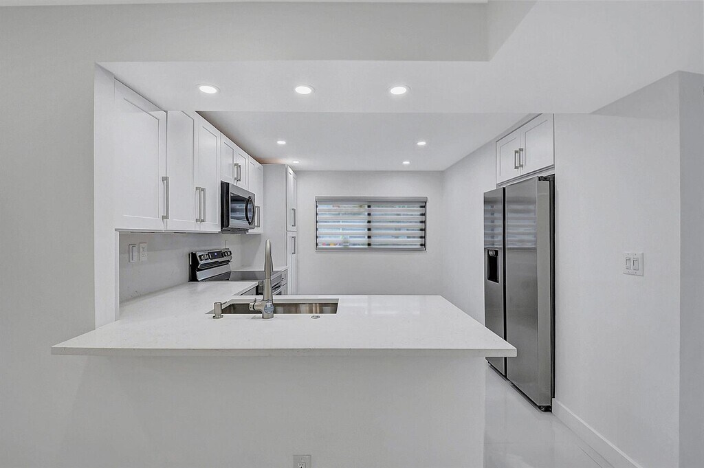 Under construction and fully remodeled, this ground-floor corner unit in the sought-after Lakes of Delray offers stunning lake views and easy access--just park and walk right in! The open-concept layout features a spacious eat-in kitchen with white cabinetry and a convenient pass-through. The owner's suite includes ample closet space and an en suite bath with a step-in shower. Enjoy breathtaking views from the screened patio. Lakes of Delray is an active 55+ community offering resort-style amenities--clubhouse, multiple pools, spas, tennis, pickleball, and endless social activities.