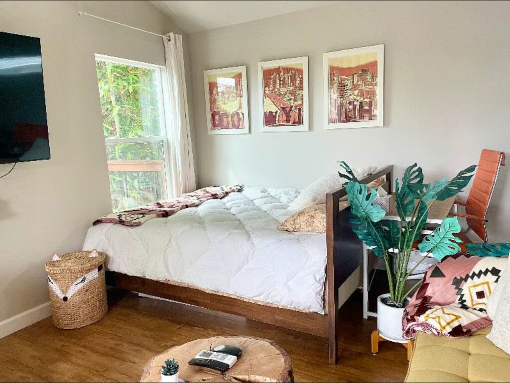 This light filled, high ceiling, stylish studio is feel good vibes as soon as you step inside. Nestled in the trees of the backyard, you look out over a pool oasis. Brand new retro appliances, coffee maker in suite, dedicated desk/work space. Complete with Dolly Parton accents :) Pool is shared, common space amenity. Friendly neighborhood with kind neighbors, right next to the Chandler Bike Path which is well lit to walk on all hours of the day, walking distance to the best Mexican restaurant Mucho Mas, acai bowl and juice bar The Juice Parlor, and local diner Tom's. Short walk/bike ride to NoHo arts district.