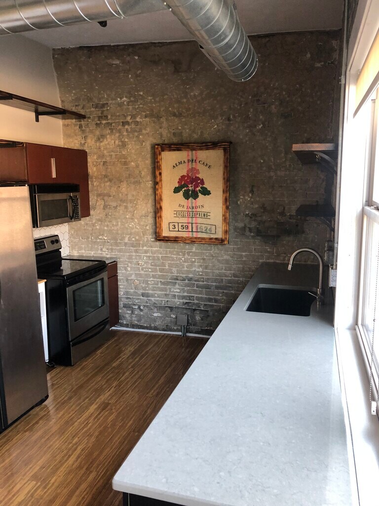 "The Brickway Residences" 1br, 1 ba condo in the heart of downtown Grand Rapids. This condo has vaulted ceilings, exposed brick walls, a large open floor plan, bamboo floors, and in unit front-loading washer and dryer. To top it off, it includes a large private patio directly off the living room. The building has a private secured entrance on Monroe Center and additional storage space in basement. Step out your door into bustling social zones, fantastic restaurants, bars and breweries. Location is kitty corner to the free DASH bus that connects to the downtown market, Bridge St., Bridge Street Market, Creston village and more. Unit has High-speed wifi included. Owner pays trash, sewer, water and wifi. Tenant pays electricity. [Pets welcome with a one-time pet deposit of $250 and monthly pet fee of $25. Restrictions apply please inquire] [Parking available in nearby city lots at varying fees- we can facilitate acquiring a spot as needed.]