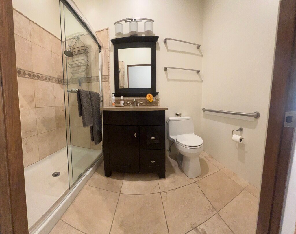 1150 sf open space 31' x 25' (x 10' ceilings) (main space = 775 sf), plus, limestone bathroom and closet spaces. Fragrance-free space (due to chemically sensitive residents in this micro-compound). Amenities: + Aesthetic UNfurnished space -except for a movable kitchen island/coffee bar (3rd photo) + Polished earthtone concrete floors throughout + Artist quality track-lighting (dimmable!) + Loft-style, movable/rotatable sleep-space (4th photo) + High-quality water filtration + Immediate hot water on demand + Beautiful walking, running arroyos and fields just a 2-minutes walk away + Elegant oversized Haiku fan + Air conditioning + Programmable HVAC + Screen doors front and back for great air flow + Std. size stainless steel fridge (optional) + 4-burner gas stove with center 2-burner griddle + Dishwasher + ADA Accessible bathroom + Beautiful treed ‘oasis’ patio with flowers & herbs + Free laundry on site + 3 Neighborhood/Oshara Village parks + Pantry Dos restaurant 2-minute walk away + Parking: free on-street at front door, plus visitor parking in community lot (for 30+ cars) + Walking distance to Community College + Owner-occupied $1950/month + utilities with 8-month lease (renewable 12-month lease)