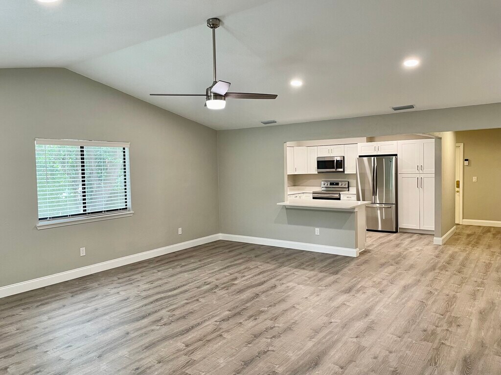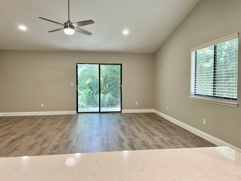Are you ready to move into this incredibly remodeled 2 bedroom, 2 bathroom townhouse with attached 2 car garage? You will love cooking delicious meals in your new kitchen with matching appliances and large quartz countertops. Enjoy entertaining in the open concept living/dining room with matching wet bar with plenty of natural light from large windows. The home features luxury vinyl plank flooring throughout the entire house and a luxuriously tiled master bath. Both bedrooms are large, and the guest bedroom can easily accommodate two beds or extra office space. All the interior lighting has been newly updated to modern LED lighting along with energy efficient appliances to keep your energy costs low. There is tons of storage space in the oversized garage for whatever you use to enjoy our beautiful area. Beautiful end unit in the Wildwood section of The Trails has a beautiful & private wooded side and back yard for privacy. Enjoy the community pool, walking paths, park, and central location. Walk or bike to Publix, restaurants, bars, shopping, & transportation. Easy access to Granada Blvd. and I95. This unit is presently occupied by the current resident enjoying the property so all showings will need to be scheduled in advance. Showings can begin as early as the week of 09/22/25 with advance notice and confirmation with property manager. Renter pays for all utilities and internet/cable. Owner pays HOA and pest control. No Smoking. Annual lease requires first and security deposit. Application fee per occupant over 18. Pet considered with non-refundable pet fee.