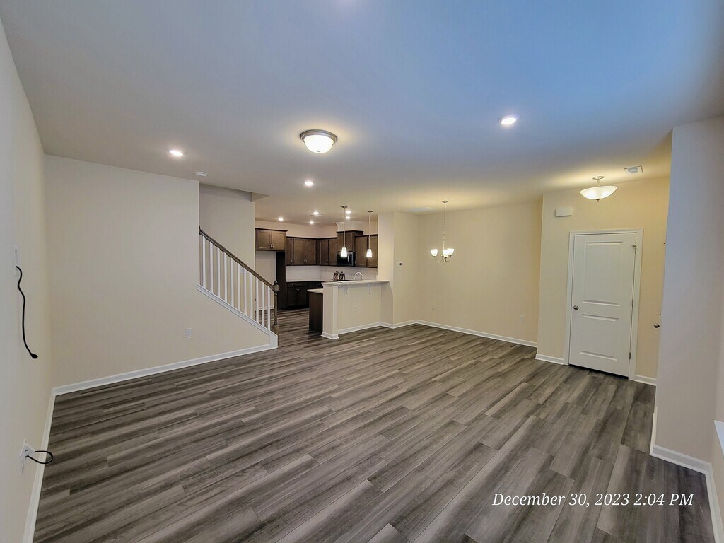 Great Location! Near to Costco and Harris Teeter. Highway 540 is less than 1.5 miles away and near the Wake Tech Campus. This Townhome features an open great room and dining which leads into the kitchen equipped with upgraded cabinets and granite countertops, stainless gas appliances and a pantry for overflow. The staircase leads up to The owner's suite which features an enormous walk-in closet. The owner's bath features a tiled shower with Glassdoor, double vanities with granite countertops and linen storage. The garage is a fully finished two-car rear load. All base school assignments are from Wake County Schools. No smoking inside the house. New appliances - washer, dryer and Refrigerator will be provided.