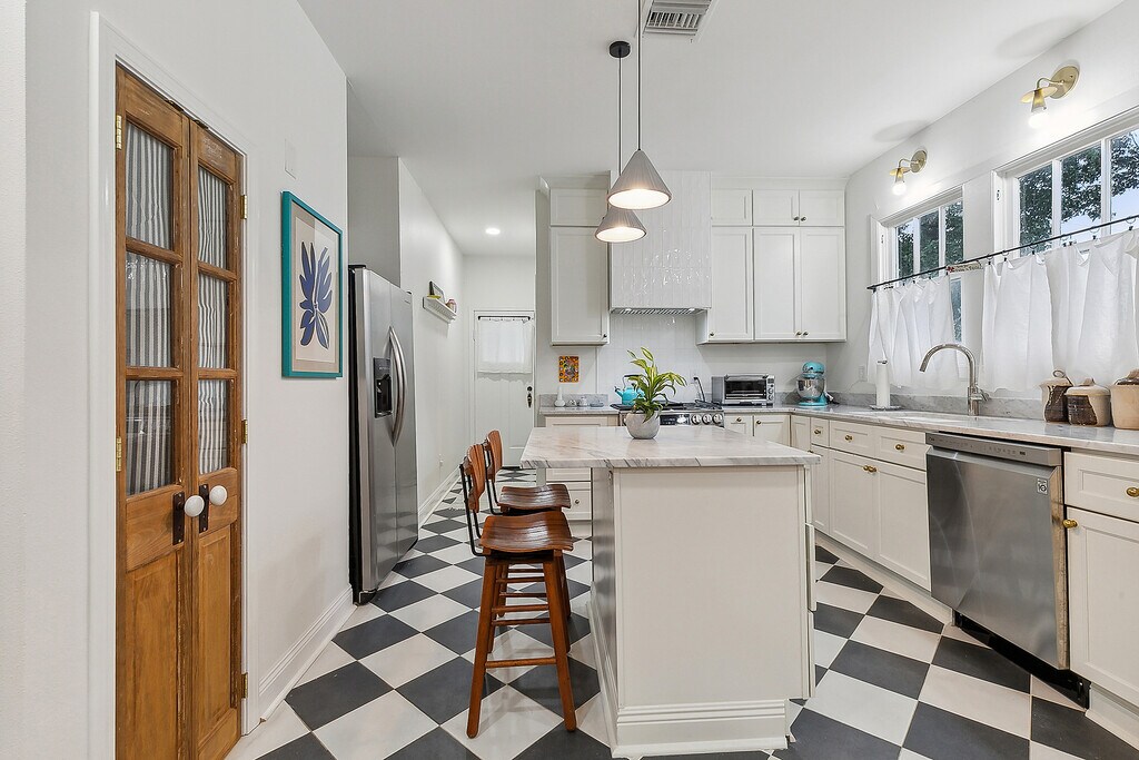 Adorable 2 bedroom cottage available for rent in convenient and quiet Navarre! Recently updated in 2021/2022, this home features modern amenities, while still being full of character. The living room is full of natural light, refinished hard wood floors, and opens to a dining space and kitchen. The kitchen features soft-close cabinets, kitchen island, designer finishes, marble countertops, pantry, and stainless steel appliances. The primary bedroom is spacious and includes a walk-in closet and en-suite bathroom. The second bedroom is independent (not shotgun layout) with a large closet. The second bathroom includes a walk-in shower. Washer/dryer in home. The backyard features a lush yard and covered patio or carport. Driveway allows for at least 2 cars for PARKING. Pets considered. Owner is a licensed agent in the state of LA.
