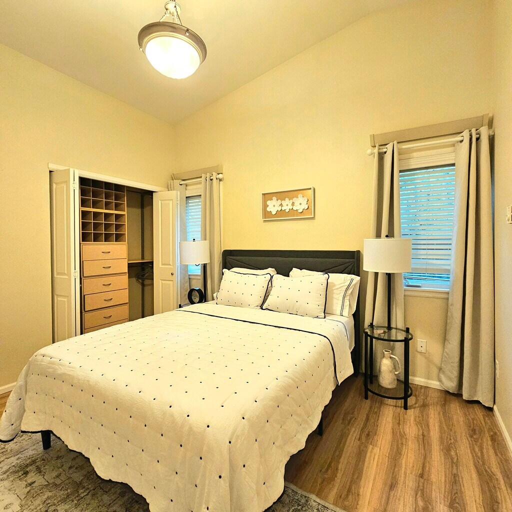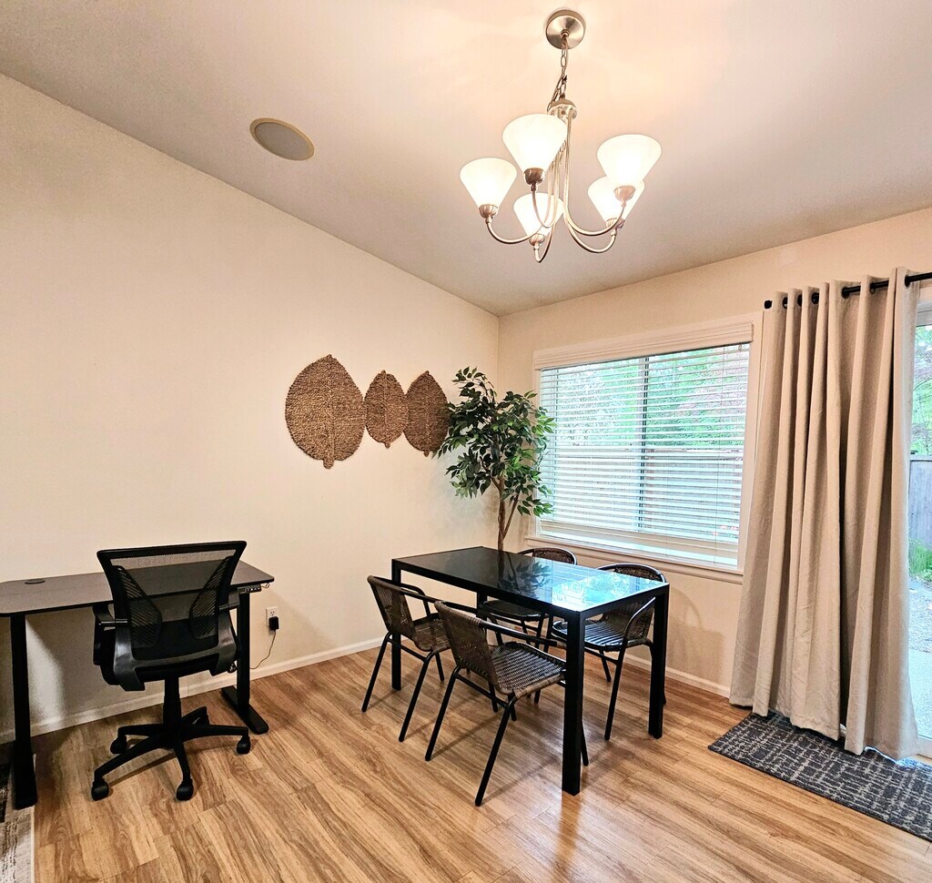 All FURNISHED single-level townhouse with vaulted ceilings, open concept, updated kitchen with quartz counters, extra storage, and a fence yard in the back. Pets are welcome, max up to 2 pets with deposit. (Breed and size restrictions may apply).