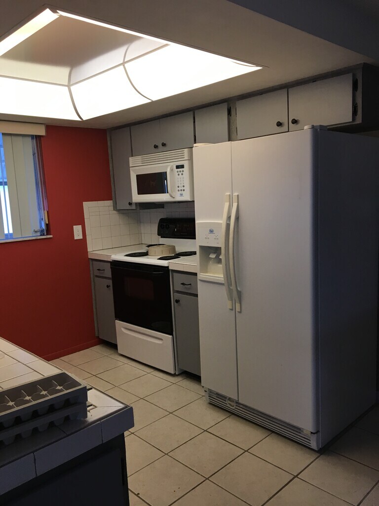 Spacious 2 bedroom 2 full bath 1 car garage home with a fenced backyard ideal for gardening. This home features a large living room and dining room combination as well as a huge tiled family room off of the kitchen. Kitchen includes refrigerator, dishwasher, disposal, stove and oven, and microwave as well as a large pantry all overlooking the large family room. The master bedroom includes a separate bath and a walk in closet. The second bedroom is also a decent size. No carpet throughout. . Linen closet in the hallway and the second full bath . Located close to Centennial Park library.