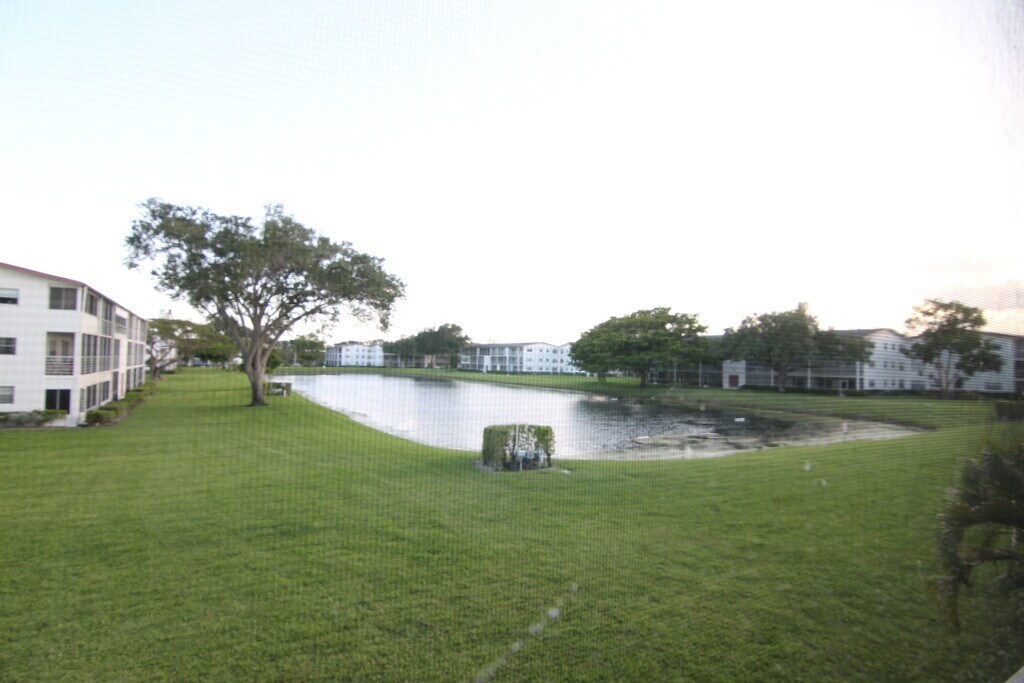 Amazing condo 1 bedroom and 1.5 baths with a long screened balcony overlooking the garden and lake. Ceramic floors throughout the property. Updated kitchen and bathrooms. A designated storage room. Elevator in the building. Common laundry room on each floor. A community pool. Century Village 55 community. Amenities include: walkway throughout the complex. The Clubhouse has a full gym, theater, pools, ping pong tables, card room, bingo, tennis courts, jacuzzi, shows, classes, clubs, library, meeting rooms, party room, fitness center, billiard room, and more. Free bus service inside the community and outside to the shops and various routes. Maintenance includes: water, cable, internet, exterior insurance, community pool. No pets. Schedule your appointment. 55+