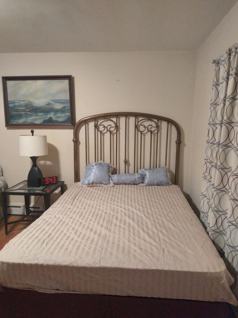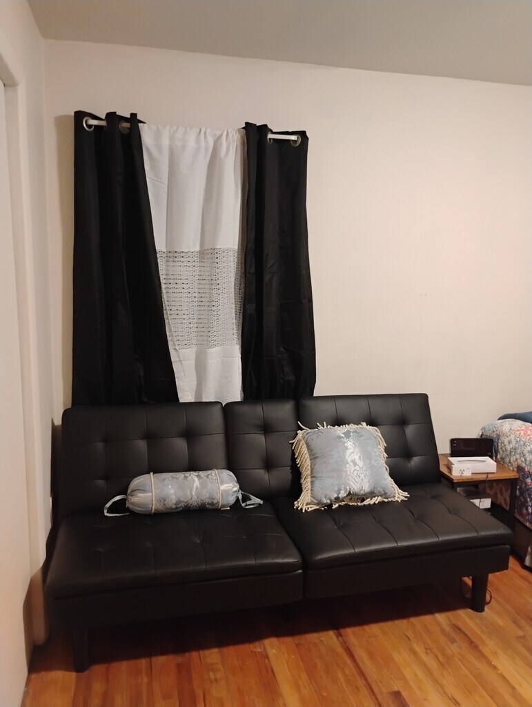 Beautiful hardwood floor. Fully furnished. Eat in kitchen. Large bathroom with built in shelving. Lots of storage.