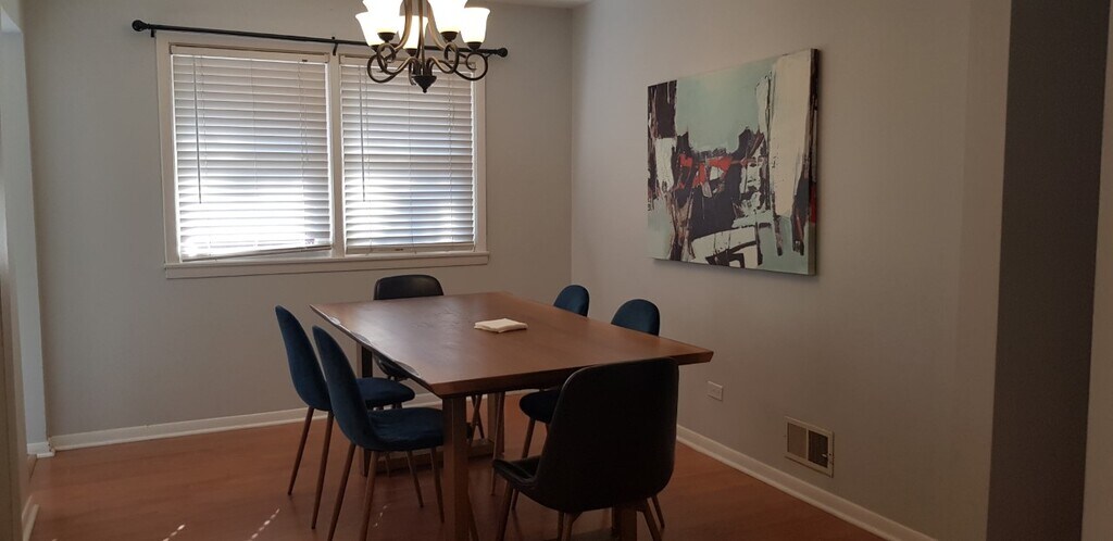 Fully furnished 3bed/2bath ranch house with big fenced yard. Centrally located ranch house with 3 bed and 2 bath can sleep 6. Huge unfinished basement and 1 car attached garage. Walking distance to Deerfield's robust downtown, train, library, dining. All essential amenities included (utilities, wifi, smart TVs, cooking needs, etc.). Deerfield offers the comfortable suburban lifestyle while also being conveniently close to downtown Chicago. 1 month minimum stay. Perfect temporary housing needs for relocation, house renovation, or between houses. Award winning Deerfield schools. Pet friendly for fee. Realtor owned.