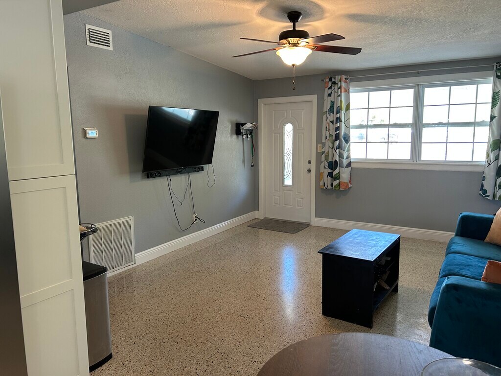 Enjoy all sunny Florida has to offer with this solar oasis that is close to everything! Edgemoor is a welcoming family friendly neighborhood close to everything St. Petersburg and Tampa has to offer. Prime location that is just 3.5 miles to downtown St. Petersburg and 15 miles to downtown Tampa. If you are walker, there is plenty to do within a few blocks: a brand new YMCA, large park (Puryear Park) with to tennis courts, kayak launch, playground, soccer fields and walking trails. The Pinellas bike trail is 3 blocks away offering a quick bike ride downtown, parks or even to the beach! For golfers, Mangrove golf course is 5 minutes away. This comfortable, modern home has 2 spacious bedrooms, 2 bath and ample parking. The large primary room has a king memory foam bed, a huge dresser and large closet. The primary room has an en-suite full bath with walk in shower and additional storage. The second bedroom has comfortable memory foam queen bed with a full closet and dresser. The second full bath has a tub. All chefs will love this furnished, upgraded kitchen thoughtfully designed to offer ample storage, new appliances, quartz countertops and eat in table. Full washer and dryer is right off of the kitchen. The living area offers a comfortable sofa and recliner to rest and recharge while watching a smart 55” TV. Enjoy entertaining outside with a huge covered outdoor kitchen with Trager (grill), full sink, cabinets, concrete bar-top, stools, plus a large dining table and chairs. Ceiling fans and additional lighting make this area usable anytime of the day or night. There is still room in this large fenced in yard to romp with your dog! Application Fee $48 Non-Refundable Pet Fee: $500 Cleaning Services available for an additional cost.