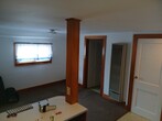 This upstairs apartment has a kitchen/dining area, living room, bathroom with a full bathtub/shower, 2 bedrooms, each with closet space. There are three additional closets in the apartment. It also includes a garage. The location is within walking distance of downtown.