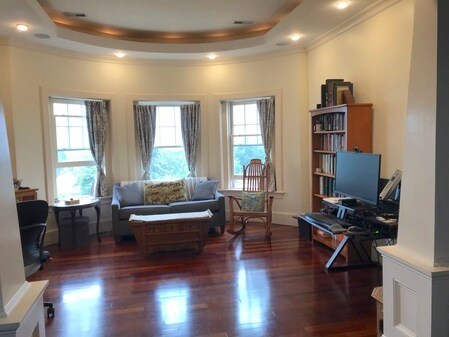 Phenomenal penthouse unit located five minutes from Central Square in tree-lined Cambridgeport. Fully renovated on the top floor of a beautiful prewar building equipped with elevator. Unit features 12-foot ceilings, bold moldings and large windows. Open kitchen with gas range, stainless steel appliances, granite counters, microwave, dishwasher and disposal, and formal dining area. Large living room with windows overlooking Cambridgeport and Boston. In-unit laundry and central AC. Additional storage in Basement. HEAT AND HOT WATER INCLUDED IN THE RENT. Completely integrated sound system with separate controls for each room. Truly a one-of-a-kind space with beautiful light and million dollar views. A must-see: call today for a showing! Available April/ May or June 1st