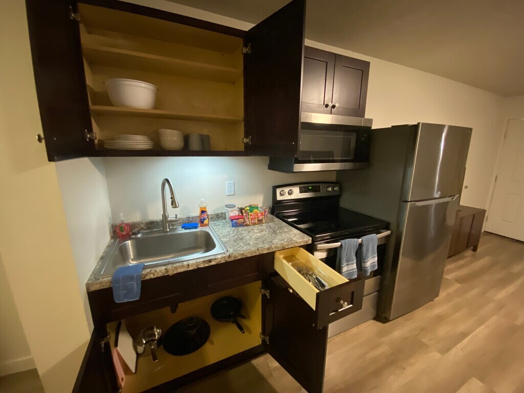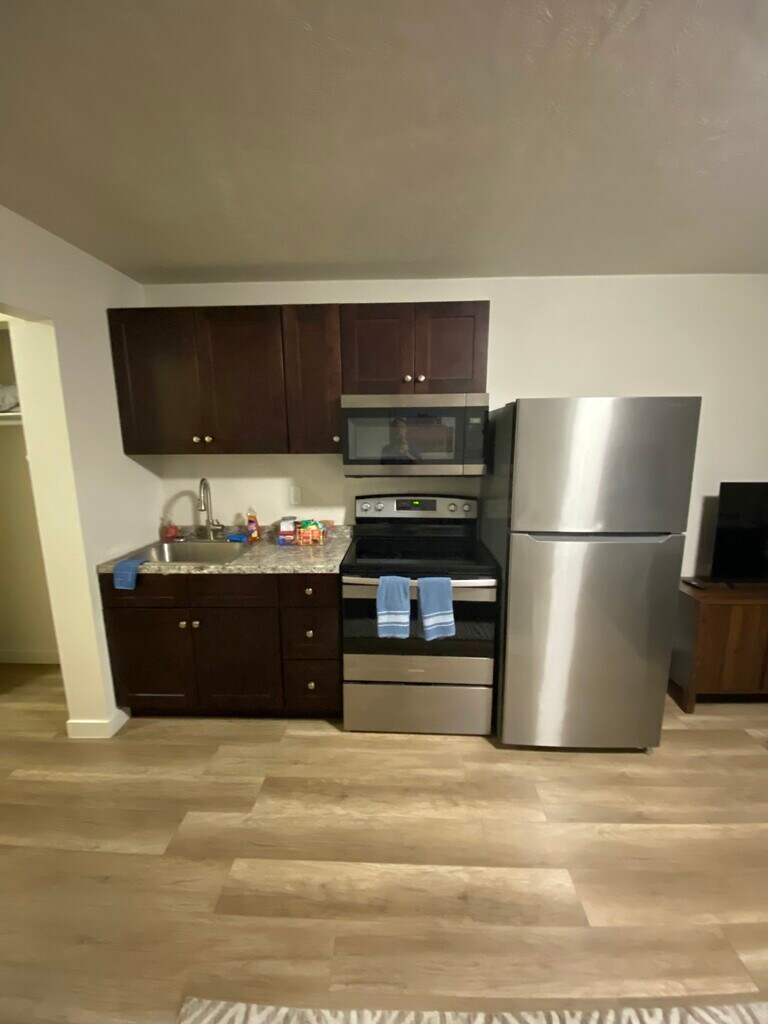 Studio with kitchenette. $1000 per month, if furnished, or $800 per month if unfurnished. includes all utilities, Wi-Fi, and free laundry No Pets. Require first and last month rent plus a $500 cleaning deposit to move in (80% refundable if clean). Total $2500 needed to move in.