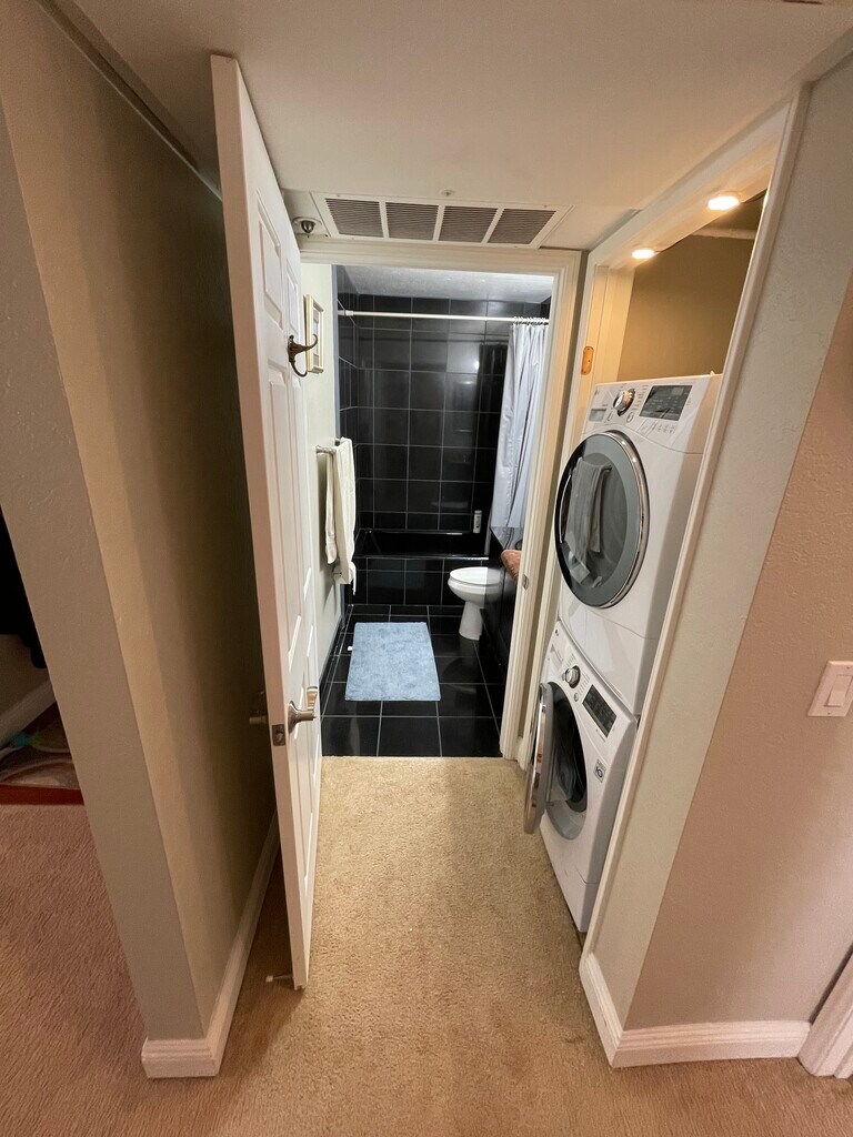 $1000 off 1st months rent! Beautiful updated and modern 2 bedroom/2 bathroom condo ideally located in Mission Valley, 5 minutes to the beach and all major freeways (5,8,163, 15), great restaurants and shopping. YMCA is only a short walk away, and residents get a 20% community discount. Condo is on the 3rd floor with great views overlooking the sparkling pool, and has been freshly painted with new carpet just installed! The condo is bright and open with central heat and central air. All appliances are included, washer, dryer, refrigerator, dishwasher and built in wine fridge. Utilities are included: Water, Garbage In unit washer and dryer are provided for daily needs and there is also on-site community laundry close by for larger items such as blankets and comforters. Also included at no extra charge are 2 very safe and secure parking spots inside a gated garage close to the elevator. The complex has many amenities available to residents such as pool, tennis and pickleball courts, community room and 24/7 guard house with package receiving service. The gated garage also has a carport for washing your vehicle for no charge.