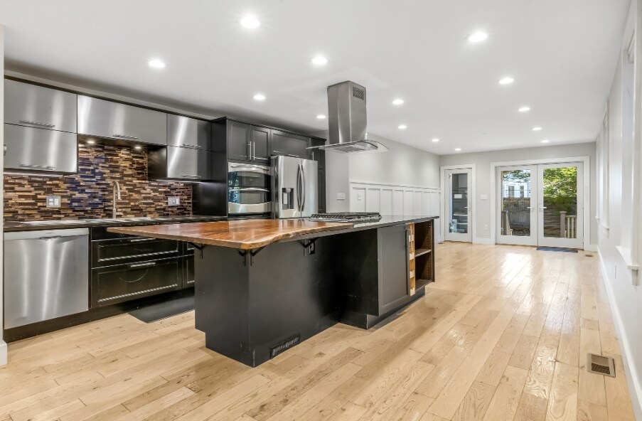 5 minute walk to Harvard University, this newly renovated single-family home blends modern luxury with classic Cambridge charm. Spanning three finished levels, it offers 3 bedrooms, 3 full bathrooms, and premium finishes throughout. The first floor features an open-concept kitchen, dining, and living area, perfect for entertaining. The kitchen is a showpiece with high-end appliances, custom cabinetry, and designer finishes. Upstairs, the primary suite enjoys a private wing with a large walk-in closet, double-sink vanity, soaking tub surrounded by tile, and a private water closet. The second bedroom also includes its own private full bath. The finished basement adds flexibility with a secondary living room, third bedroom, in-unit laundry, and tons of storage space. Enjoy the outdoors with a fenced private backyard, and park with ease in your two off-street driveway spaces. Located within close proximity to Harvard Square, Central Square, public transit, shops, and restaurants