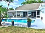 Stunning lakefront private pool rental in the sought-after Briarwood community! This beautifully renovated pool home3-bedroom, 2-bath, no-carpet home features a private resurfaced pool with a screened lanai—perfect for relaxing and enjoying Florida sunsets near world, famous Gulf Coast beaches.The modern gourmet kitchen offers granite countertops, soft-close cabinetry, and upgraded appliances, plus a dedicated laundry room with washer, dryer, and utility sink. Vaulted ceilings create a bright, open feel throughout. The primary suite includes a spacious walk-in closet, and both guest bedrooms also offer walk-ins. The oversized, fully fenced yard with three locking gates is ideal for privacy and pets. Attached two-car garage included. Briarwood amenities include a clubhouse, two community pools, and tennis courts, all surrounded by scenic lakes. Conveniently located minutes from Walmart and Sam’s Club, about 25 minutes to Gulf beaches, and a short drive to Sarasota Airport.