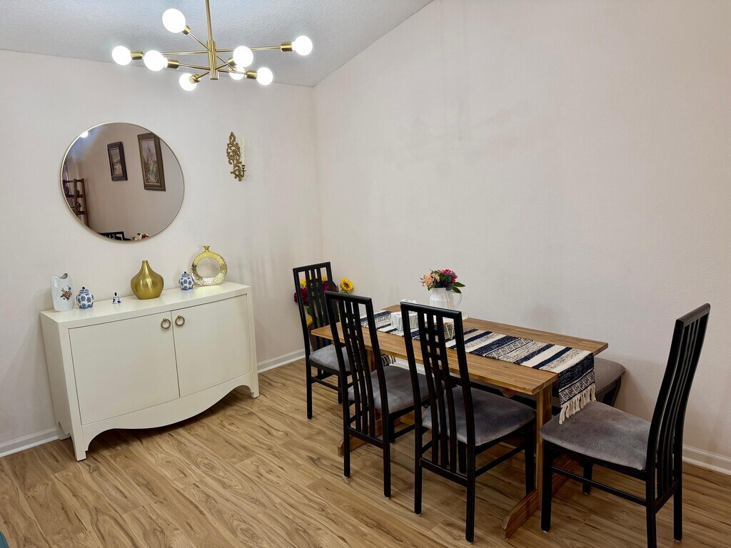 Move-in ready, fully furnished 2-bedroom, 1-bath condo in Oakleaf Plantation in Orange Park, Florida with open-concept living and 1011 sq ft of space, perfect for traveling nurses, professionals, or relocating families seeking convenience and comfort. Located close to multiple hospitals, major employers, shopping, dining, and top-rated schools, this condo offers resort-style amenities and a quiet, secure community feel. Fully furnished, turnkey – just bring your suitcase One king bed and one memory foam futon/sofa bed In-unit washer and dryer High-speed Wi-Fi and Smart TVs Central heating and air conditioning Reserved parking; guest parking available Location highlights Convenient Oakleaf Plantation location close to major roads, shopping centers, restaurants, and everyday services. Short drives to grocery stores, Walmart, dining, and entertainment. Ideal for hospital staff and medical professionals needing quick access to nearby facilities.