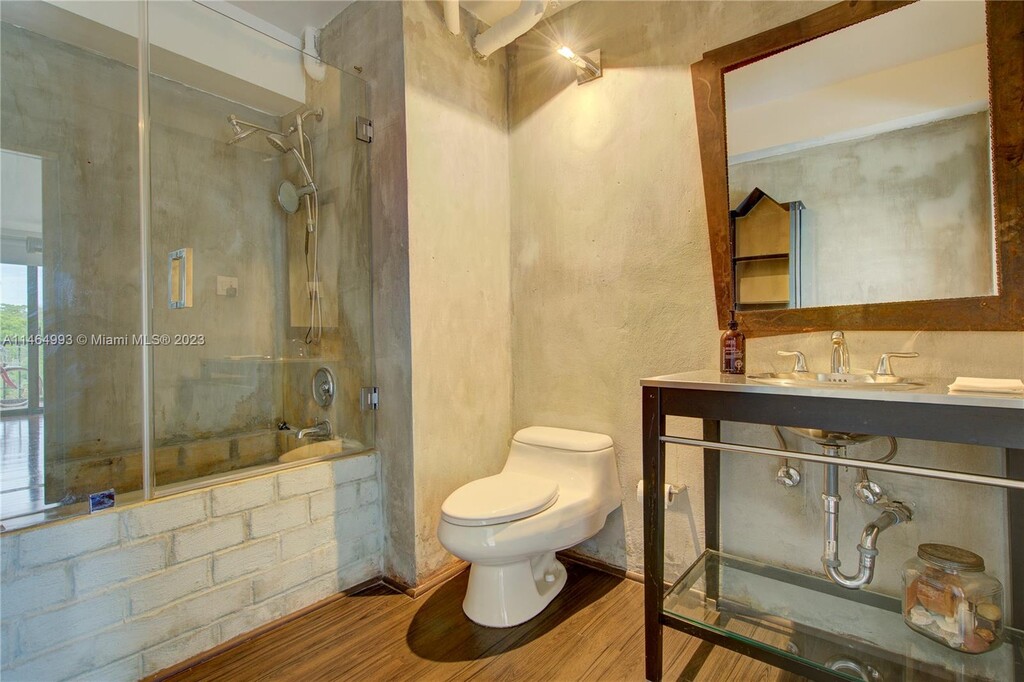 Stunning with industrial finishes, warm wood floors and stone accents. The large entertaining space features a chef's kitchen with stainless steel countertops and appliances. Each ensuite bedroom is ample in size with excellence closet space and fine finishes in the bathrooms. Additional features are laundry in unit and a deep covered patio perfect for lounging.