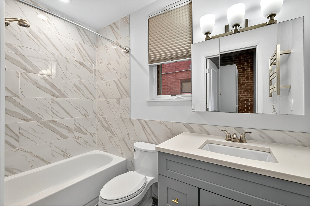 Beautifully maintained 3-bed 3-bath duplex condo conveniently located in the Marion section of Journal Square and 10 minutes to the Journal Square PATH train. Charming functional kitchen with quartz countertops, white soft-closing kitchen cabinets, grey mosaic tile backsplash, stainless steel appliances, recessed lighting and a pantry to hold all your groceries and other essentials. Three bedrooms and 2 of the 3 bathrooms are on the upper level with windows and an abundance of natural light. Remote-controlled mini split heating/cooling system, tankless water heater, intercom and your own private entrance at the side of the building in addition to the front main entrance way.