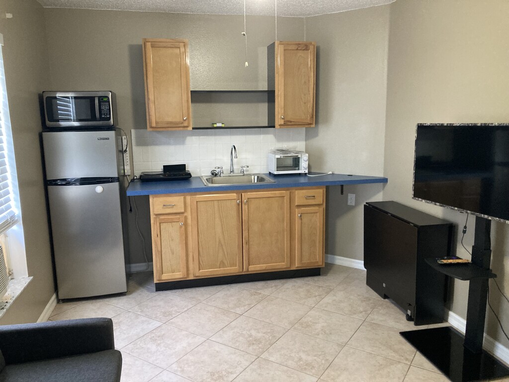 Welcome home to this semi-furnished one bedroom efficiency unit in a safe, quiet, Port Saint Lucie neighborhood. Recently renovated, this unit consists of a bedroom and separate living space connected with a hallway as well as a “Jack-and-Jill” bathroom. The bedroom includes a NEW full size mattress, dresser, and side table. This room has a spacious walk in closet, an en-suite bathroom, and is located at the far corner of the home for some well deserved peace and quiet after a long day. Walking through the bathroom or hallway will bring you to a newly furnished living space. Furnishings include a TV, small couch to relax, and collapsible multipurpose table to enjoy a meal or sit down and get some work done. The living area includes a NEWLY installed kitchenette with tile backsplash complete with refrigerator, microwave, 2 element electric countertop range, and toaster oven. As shown, there is ample cabinet space and a large sink for washing up after making a meal. This unit is located within and segmented from a single family home and has a private entrance into the unit itself. The unit is attached to the home’s central cooling and heating but also includes a window AC unit in each room for customized cooling. Excluding internet, all utilities included at reasonable usage rates. Internet is available through Comcast/Xfinity or T-Mobile home internet. Please see below for unit restrictions/information: Single occupancy strongly preferred. No pets. No washer/dryer in unit. Off street driveway parking included. All utilities excluding internet are included at reasonable usage rates. Some or all furniture can be removed upon request. 6 month initial lease term with 6 or 12 month renewal option. Please call for further information or questions. An initial text message before calling is preferred to ensure your call is expected and answered.