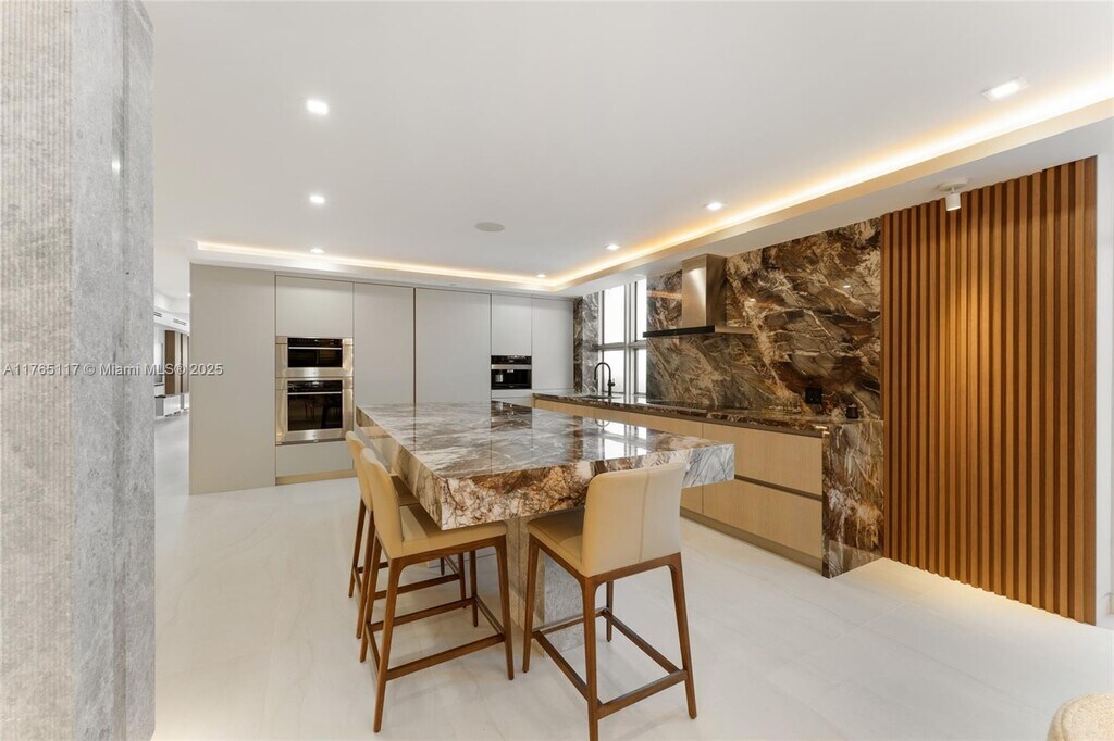Experience luxury oceanfront living at Villa di Mare fully renovated with top-of-the-line finishes unit - Furnished 4BD/5BA plus an office, seasonal rental available from October 1, 2025 – April 1, 2026. This exclusive full-floor residence offers sweeping ocean, bay, and city views from expansive wraparound terraces and 2 private elevators. Boasting 4,600+ SF of interior space, the home features a gourmet kitchen with Sub-Zero and Miele appliances, wine fridge, granite countertops with a large island, Italian ceramic floors, custom-made millwork and spacious closets. Enjoy 6 parking spaces, a private oceanfront pool, gym, and sauna. Villa di Mare offers only 12 residences, ensuring privacy with 24-hour security, and valet service. Rare opportunity for a premier Miami Beach lifestyle.