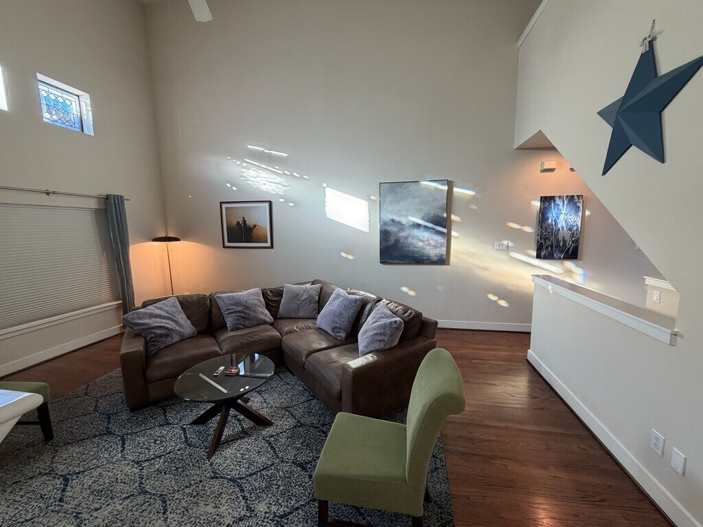 Deep in the heart of Cottage Grove-Houston Heights, this spacious townhouse boasts a great, gated location, 2 car garage, close to restaurants, bars and shopping. Walkable to Memorial Park and White Oak Bayou (minutes from Downtown, Montrose & The Galleria) Ideal for 2-4 guests looking for a long term quiet home with easy access to all Houston has to offer. 2 dedicated work spaces with fast wifi, full kitchen and outdoor grill. There is a private office and an additional work space both with a desk and chair. Queen air mattress available upon request for up to 6 guests. The space is a 3-story fully furnished townhouse located within a gated community of 6. Modern interior decor with backyard. Full kitchen with microwave, fridge, washer/dryer and coffee maker (coffee & tea included). Easy access to I-10 and the 610 loop and just minutes away from I-45 and I-69/Hwy 59 Off-street parking in 2-car garage. The property sleeps 4 adults comfortably. We have a queen air mattress available upon request for parties of 5 or 6 which will fit in the private office room. Both bedrooms have comfortable beds (one king, one queen), televisions with Apple TVs logged in to the following streaming platforms: Netflix, Hulu, Amazon Prime, HBO max, Disney+, ParamountPlus/Showtime and Peacock. Guests have complete access to the entire property (indoor, backyard, garage, etc.) except the attic and pantry. There is plenty of storage space available. No pets are allowed. No parties are allowed. Only approved guests may be present on the property. Attached 2 car garage fits two standard size vehicles. (1 small SUV and a standard car will fit too) There is no street parking on our block and the surrounding street parking is limited.