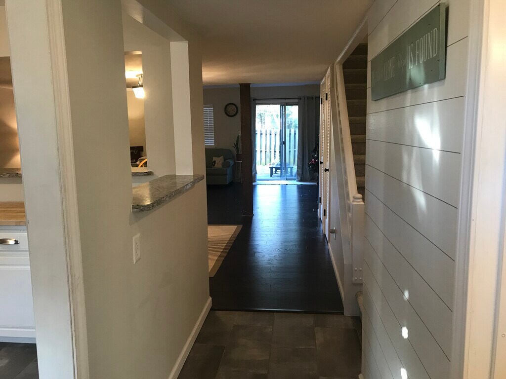 5813 Nottoway Ct, Unit C, Raleigh, NC 27609 is a 3 bed, 2.5 bathroom townhouse located in North Raleigh. The 2-story, 1,596 square foot home is updated with luxury laminate flooring on the main floor and in the master bedroom, updated tile in the kitchen and bathrooms, and granite countertops in the kitchen. Master bedroom has a walk-in closet and inviting master bath. Secondary rooms have carpet and share a full bath. In the back is a quaint concrete patio with space for outdoor furniture and grilling! The neighborhood offers a swimming pool and clubhouse. Washer/Dryer, stove, oven, dishwasher, and refrigerator are included. Please note: This townhouse is unfurnished. Furniture and belongings in photos are for staging purposes only.
