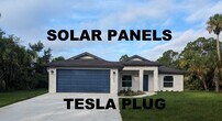 Available Now - Only 2 years old, this 2023 super energy efficient home includes Solar and a Tesla/EV plug in the garage. This split plan 3 bedroom 2 bath home with 2 car garage will be your perfect home offering all of the latest conveniences. You'll save hundreds on your utility bills and have a noticeably more comfortable home. The solar PV system powers the home and charges an EV, and with a well and septic, there's no water bill. The luxury vinyl flooring throughout is in the perfect grey color, and is sure to compliment any furnishings. Vaulted ceilings in the main living area and kitchen give a roomy feel. Kitchen includes stainless steel appliances, a side by side refrigerator with water and ice dispenser, glass top range, dishwasher, built in microwave, beautiful cabinets, granite countertops and a large island with breakfast bar. Ceiling fans in all rooms and elegant light fixtures throughout. The Master Bedroom is big enough for a king size bed, has beautiful plank tile, two closets, two sinks, a private toilet room & a linen closet. The laundry room has washer/dryer hookups. Hurricane rated impact windows & doors, a garage door opener with exterior pin pad and Florida friendly landscaping complete this beautiful home. -Not in a Flood Zone. -Hurricane rated to 160 MPH winds. (you don't have to worry when a storm is coming) -Zero Energy (minimal electric bills) -Well and septic (no water bills) -Local Owner/Manager