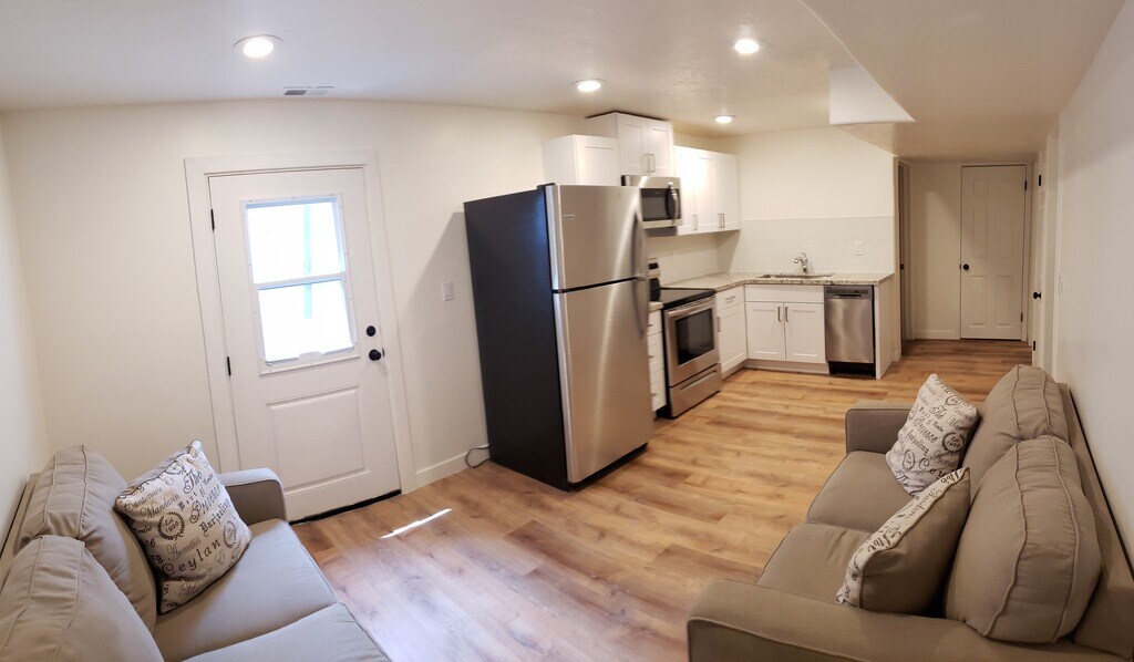 Newly renovated basement apartment. 1 bedroom, 1 office, 3/4 bathroom, laundry room, under stairs storage, full kitchen with dishwasher, granite countertops. Brand new, stainless steel appliances including; dishwasher, fridge, oven, range, microwave, washer and dryer. Private entrance via exterior stairwell. Beautiful Apline UT community with a private HOA owned park across the street, nearby hiking and biking trails.