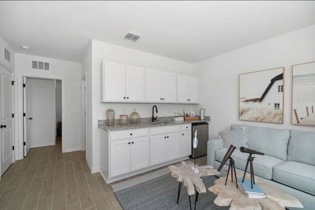 Be the first to live in this beautiful, brand new, unfurnished, 1 bedroom, 1 bathroom in-law suite in SE Palm Bay, FL. Located in a quiet single-family neighborhood off Emerson and Jupiter, this in-law suite is attached to the main home and features a private entrance, all tile floors, and a kitchenette that includes a sink and a mini fridge. Pictures are professionally staged and taken for reference. Ideal for an individual seeking a quiet, convenient location just 5 minutes from I-95 for an easy commute, 5 minutes from Eastern Florida State College, 15 minutes from Florida Tech, and 9 minutes from Palm Bay Hospital. Tenant parking in the driveway. Move-in is available as early as November 15th. Rent is $1,150 per month with a security deposit required. Utilities are not included. The home is smoke-free and drug-free, and only individual renters will be considered -no couples or families. Please note that the photos show furniture for scale, but the apartment will be completely unfurnished. If you have any questions, feel free to reach out.