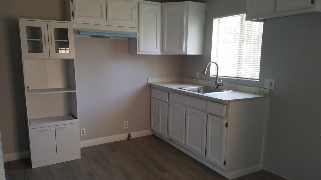 Perfect if your single and retired. New paint, new floors, freshly remodeled, private back yard, small studio size, but modern and clean cozy single house, private back yard, private driveway parking, no common walls separate building. Very Quiet. Unit is in the back. New blinds, new light fixtures and fans. Just remodeled, tile and vinyl floors, new kitchen countertop, painted kitchen cabinets, Includes refrigerator and stove. Family complex three seperate houses on a lot. Call me for more details, Section 8 welcome, thank you