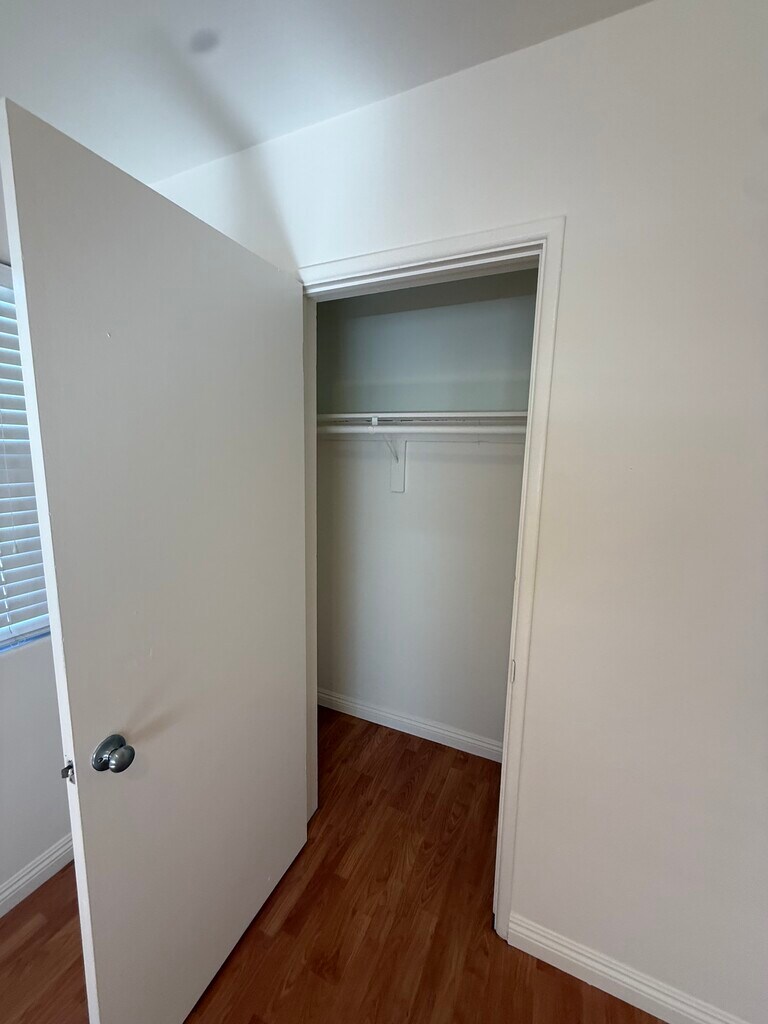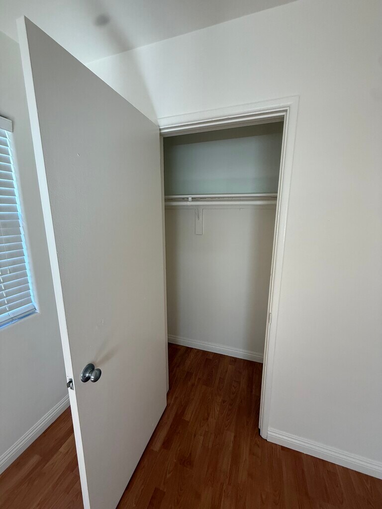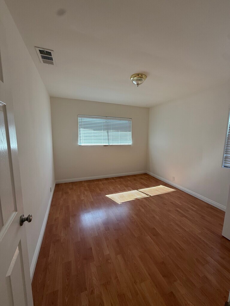 Charming 2 bedroom 1 bathroom upstairs unit in a quiet building. Freshly painted, ready to move-in. Central air and heat, laundry room on premises, gated parking for one car with a storage space. Owner pays water and trash. No pets. First month and deposit upon signing a one year lease. Ideal candidate has strong credit and good references. Owner pays water and trash. One year lease with first month and deposit due at signing. Once the lease expires, terms are month to month.